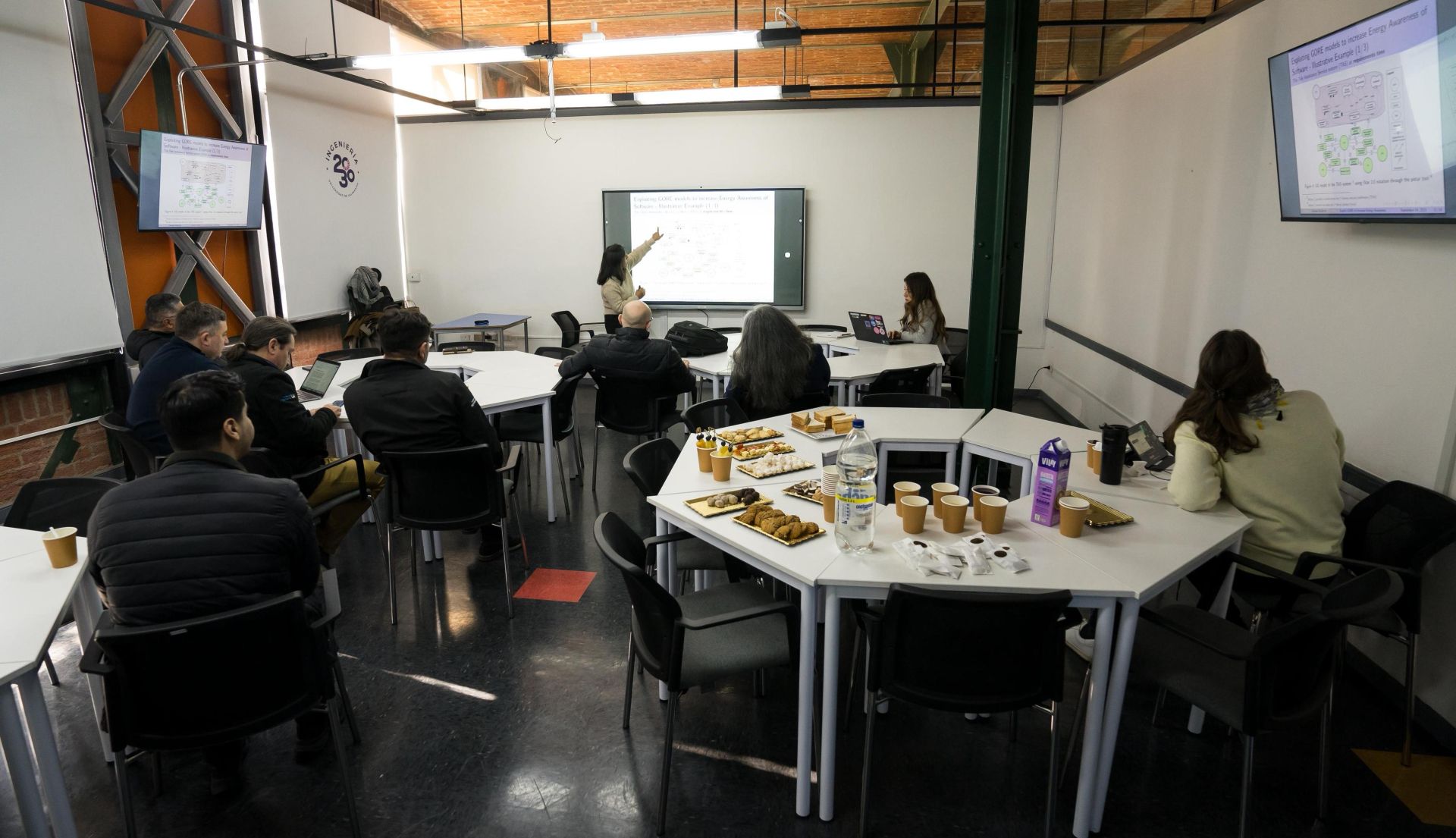 La jornada continuó con la presentación titulada “Exploiting Goal-oriented Requirements Models for Increasing Energy Awareness: a Research Preview”, a la que asistieron diez académicos y académicas de la Facultad, quienes participaron en un diálogo técnico orientado a incorporar la dimensión energética desde las primeras etapas de planificación de un proyecto de software, particularmente a través del uso de modelos de requerimientos orientados a objetivos.
