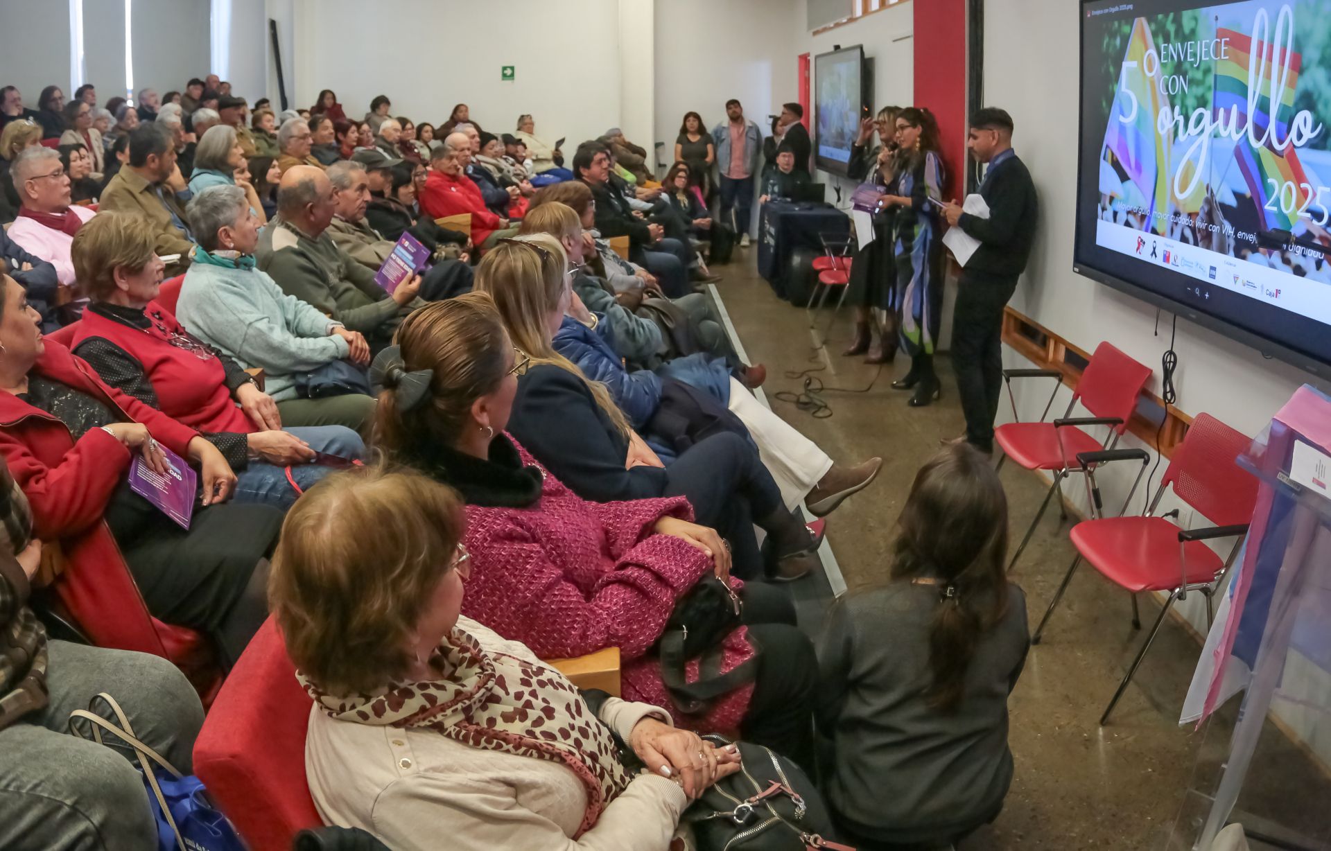 Un público intergeneracional desbordó el CIAE para la actividad que realizó el Senama junto a Gerópolis UV y otras organizaciones para las experiencias de las personas mayores LGBTIQA+ y las que han vivido con VIH/sida.