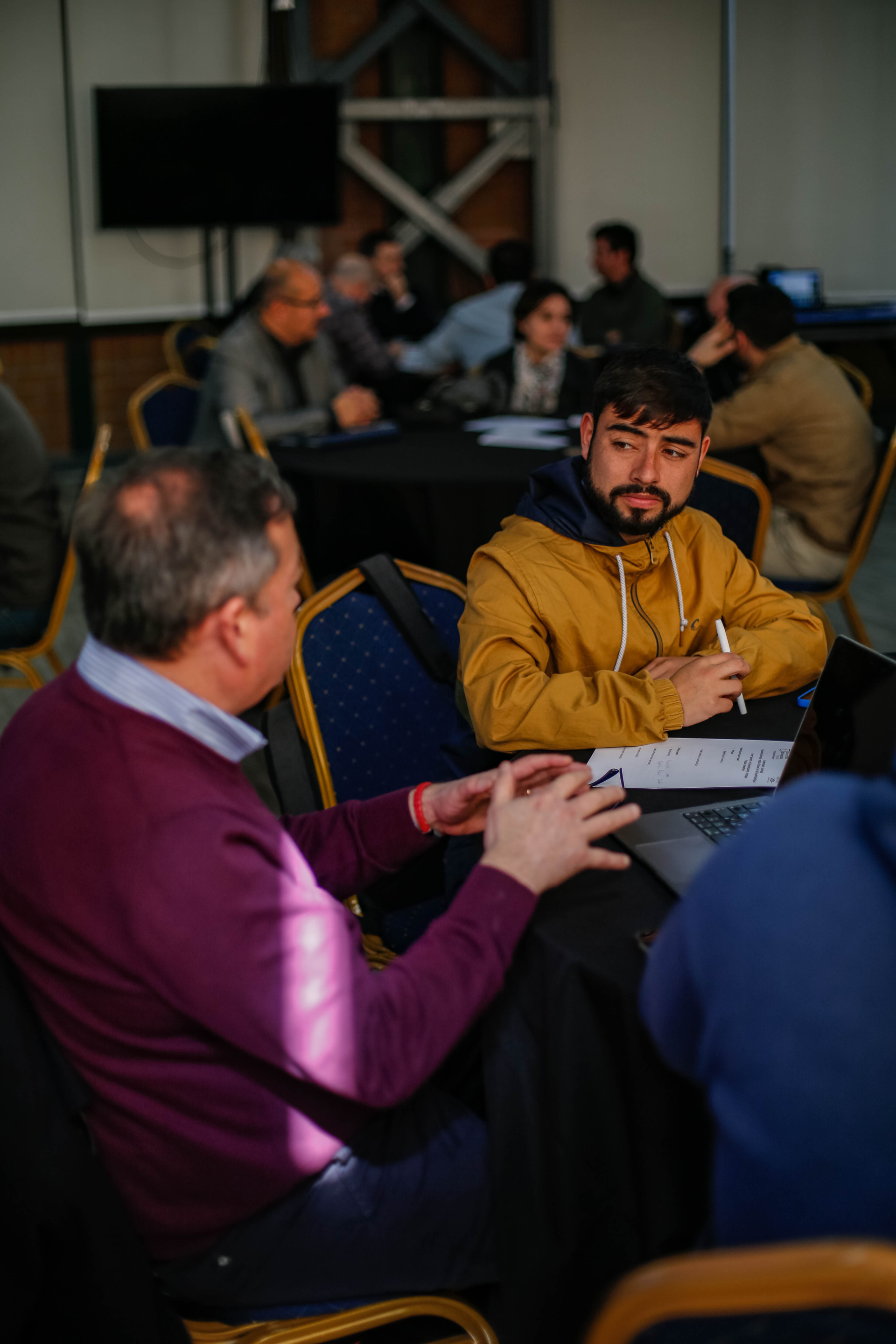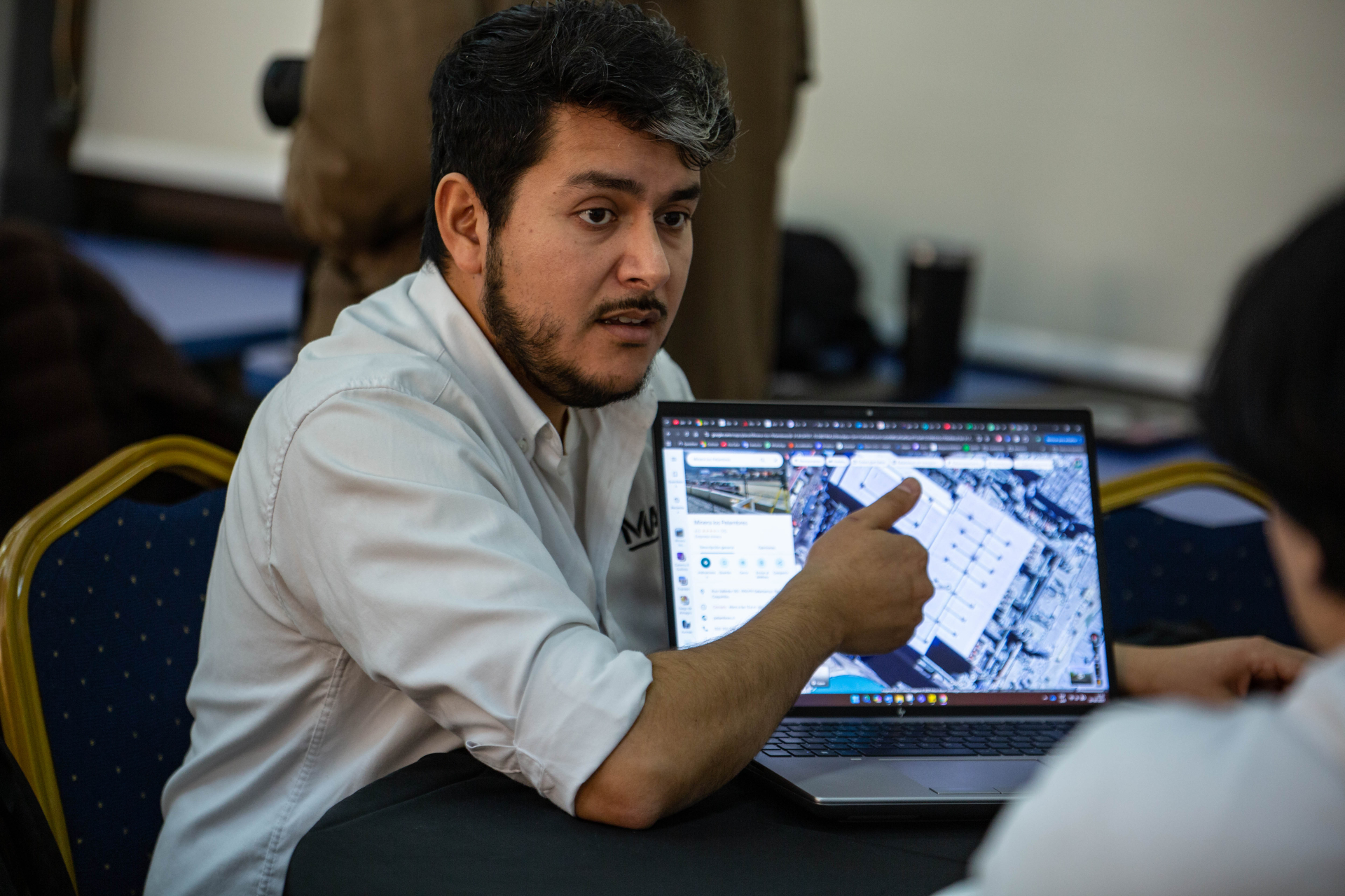 El segundo bloque de la actividad comprendió la conformación de mesas de trabajo integradas por equipos mixtos de investigadores y estudiantes, con el propósito de avanzar en soluciones conjuntas, contando con un monitor que dirigió la dinámica y metodología de trabajo. Al finalizar, tuvieron un máximo de tres minutos para presentar sus principales conclusiones.