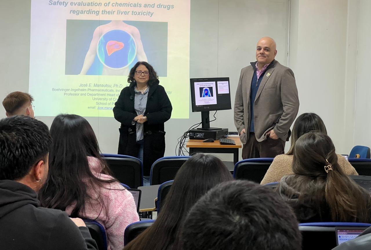 Durante su paso por la UV, el doctor Manautou dictó una conferencia abierta titulada “Deficiencia de MRP4: una vía para el hígado graso, la adiposidad y las enfermedades metabólicas”, además de clases magistrales y sesiones presenciales con estudiantes de pre y postgrado de Química y Farmacia y del Magíster en Toxicología. También recorrió laboratorios y sostuvo reuniones con académicos para explorar nuevas oportunidades de colaboración.