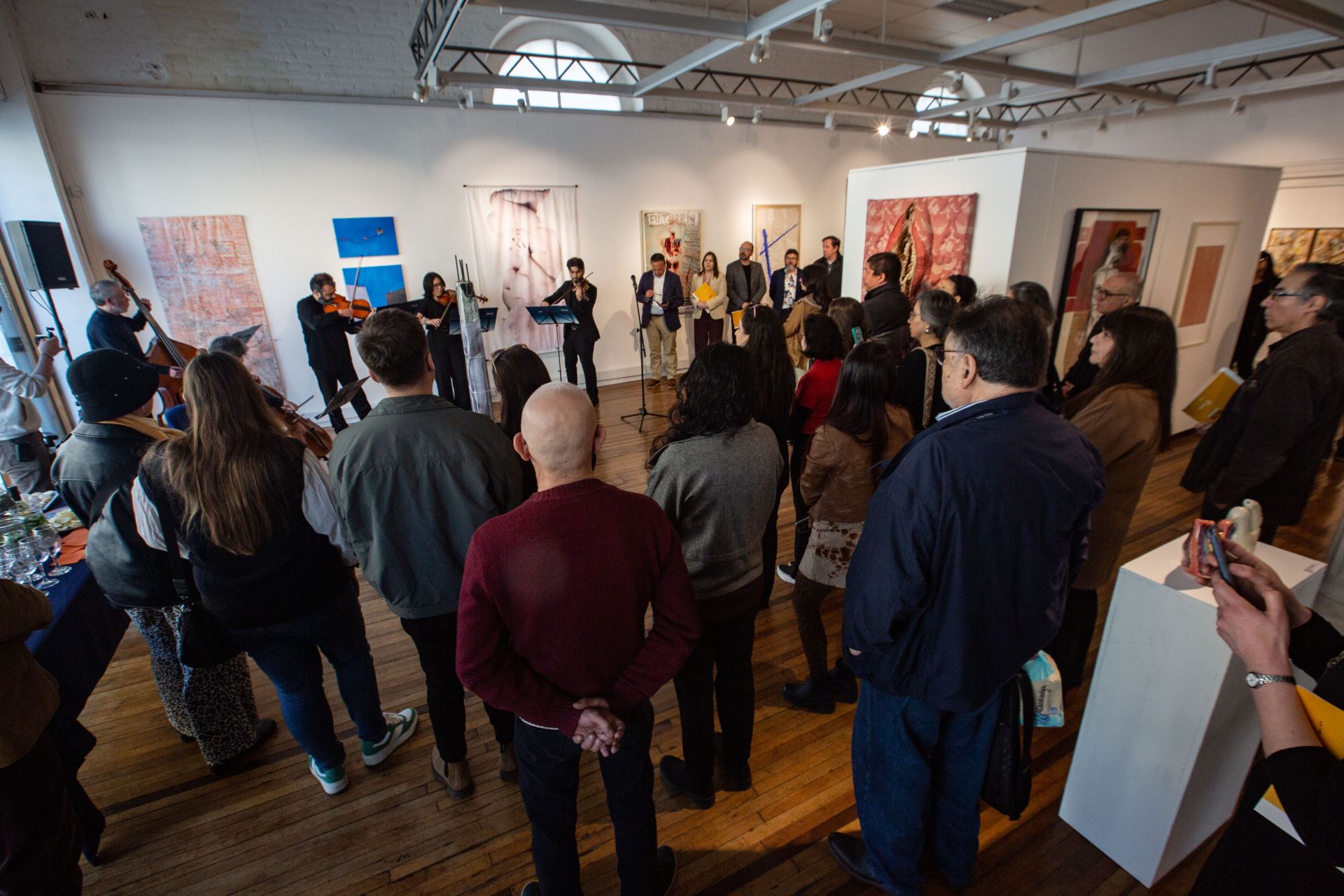La exposición fue inaugurada con la presencia de numerosos artistas visuales, en un acto que encabezaron la vicerrectora de Vinculación con el Medio, Paulina Gundelach; el director de Extensión y Comunicaciones, Osvaldo Bizama; el director de la sala El Farol, Rafael Torres; el decano de la Facultad de Arquitectura, Alejandro Witt, y el coordinador de la muestra, Gustavo Ávila. Les acompañaron Carolina Bermúdez y Erich Birchmeier, quienes integran la muestra y fueron coorganizadores de la selección y el montaje.