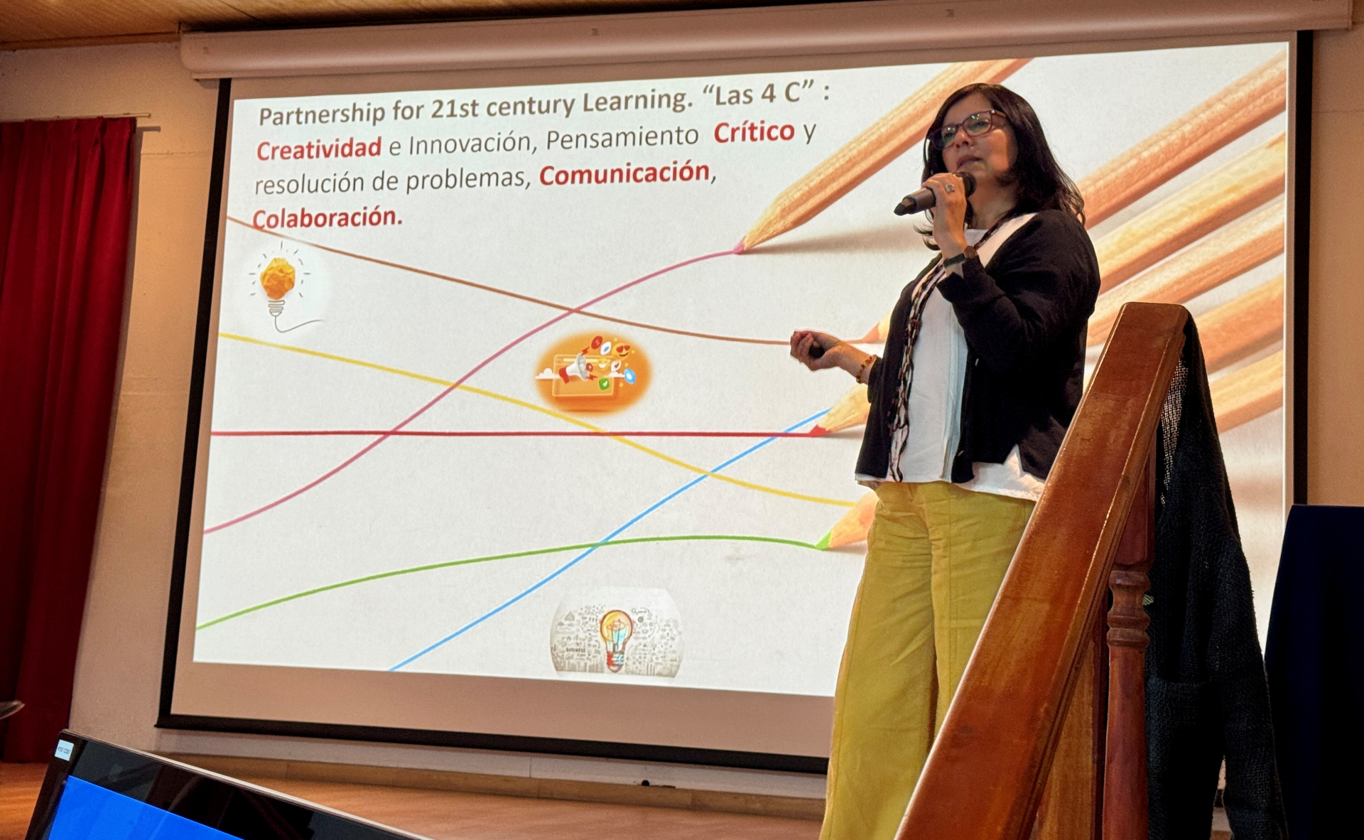 La académica Pamela Herrera comentó que “estoy muy contenta de haber sido invitada a esta charla, porque es un tema que a mí me apasiona y porque acercarnos como universidad a los colegios. Creo que es fundamental trabajar en conjunto, en sintonía. Es imposible no empoderarse de un tema que nos compete a todos en una discusión bidireccional. Si bien yo di la charla fue muy interesante escuchar a los profesores que participaron. Me encantaría que, más que con un concepto, se hayan ido con muchas inquietudes, con muchas preguntas que tengan que ver con su práctica docente. Que lo que pudimos aquí discutir y los enunciados que yo hice respecto del neurodesarrollo les haga sentido, lo implementen y sean el factor de cambio que queremos para mejorar la educación de nuestro país a todo nivel”.