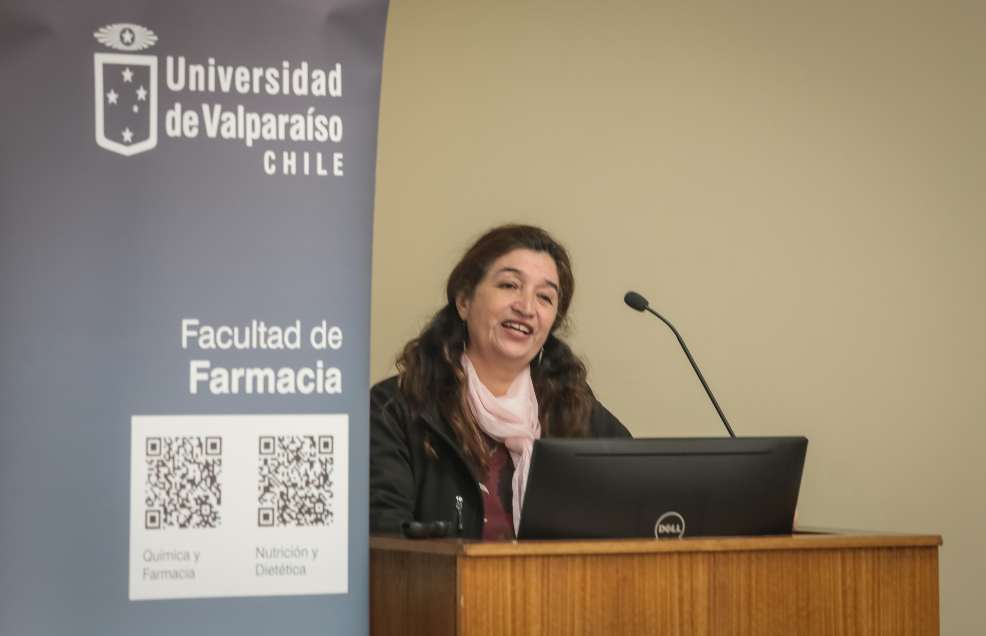 La actividad contó con la participación de autoridades universitarias, académicos, académicas, estudiantes, funcionarios y funcionarias de la Facultad de Farmacia, entre ellos la profesora Marcela Escobar Peña, integrante de la Junta Directiva UV y jefa de carrera de Química y Farmacia; la decana de la Facultad, profesora Caroline Weinstein Oppenheimer; el director de Relaciones Institucionales, José Luis Meza Orellana; el vicedecano, Juan Ojeda Herrera; las directoras de las Escuelas de Nutrición y Dietética y de Química y Farmacia, Daniela Pincheira Ruiz y Yanneth Moya Olave, y a representantes estudiantiles, funcionarios y coordinadores de vinculación con el medio y de Alumni UV.