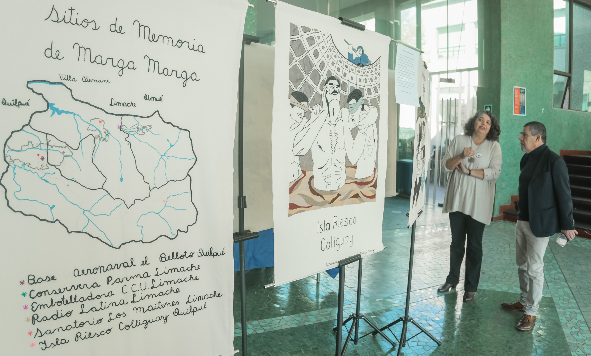 La Escuela de Derecho de la Universidad de Valparaíso acogió la exposición “Sitios de Memoria Marga Marga”, organizado por el Colectivo de Bordadoras por la Memoria de Marga Marga, con el patrocinio de la Seremi de Justicia y Derechos Humanos y la mencionada unidad académica.