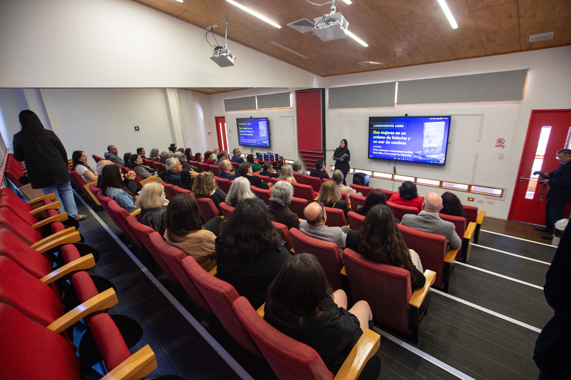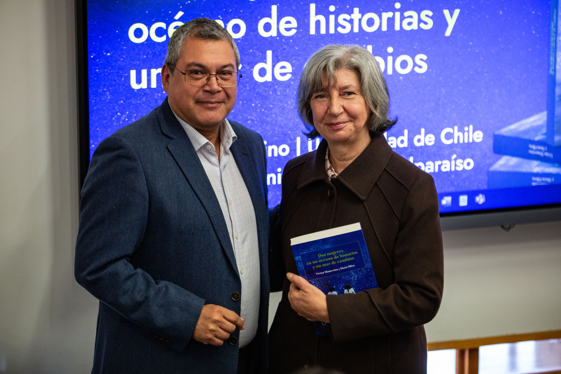 El edificio CIAE de la Universidad de Valparaíso fue el escenario donde las destacadas investigadoras Doris Oliva, académica del Instituto de Biología UV, y Vivian Montecinos, del Departamento de Ciencias Ecológicas de la Universidad de Chile, presentaron su libro “Dos mujeres en un océano de historias y un mar de cambios”. La publicación, de 644 páginas y editada por el sello de la Universidad de Chile, constituye un hito en la memoria científica del país, al reunir testimonios, relatos y análisis que ponen en valor el rol de las mujeres en la oceanografía y proyectan los desafíos de las ciencias del mar hacia el futuro.