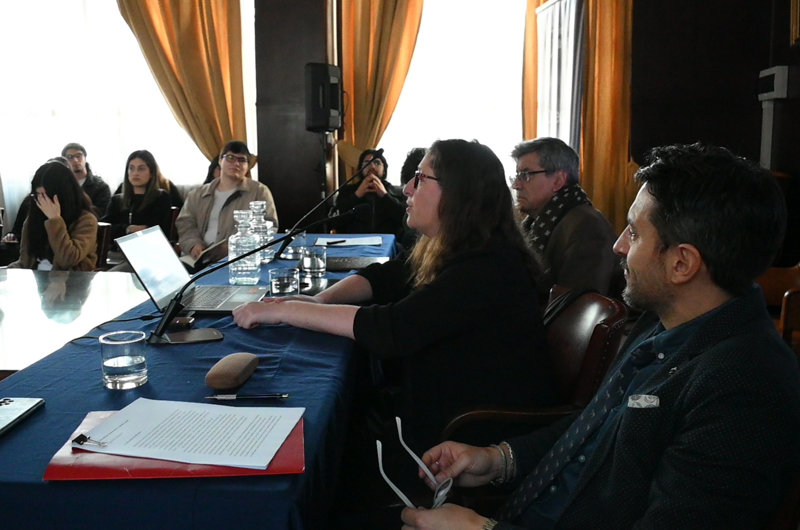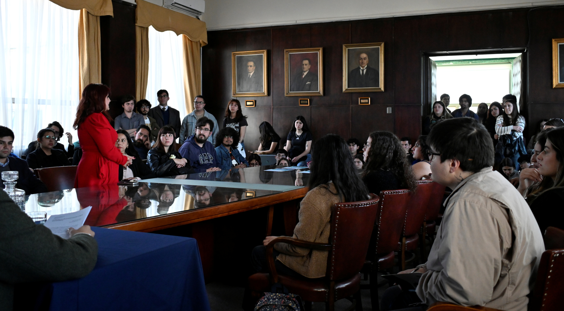 En sus palabras de bienvenida, la directora Inés Robles señaló que el profesor Manuel de Rivacoba y Rivacoba “entregó mucho en el ámbito del Derecho Penal. Él era un gran maestro que formaba discípulos, y uno de sus grandes discípulos —si no el mayor de ellos— es el profesor José Luis Guzmán, que ha hecho precisamente lo mismo que hizo en su minuto el maestro Rivacoba: formar a otros. Tenemos la prueba acá, con la profesora Rocío Sánchez y los profesores Juan Pablo Castillo y Diego González, y queremos que siga formando por muchos años más”.