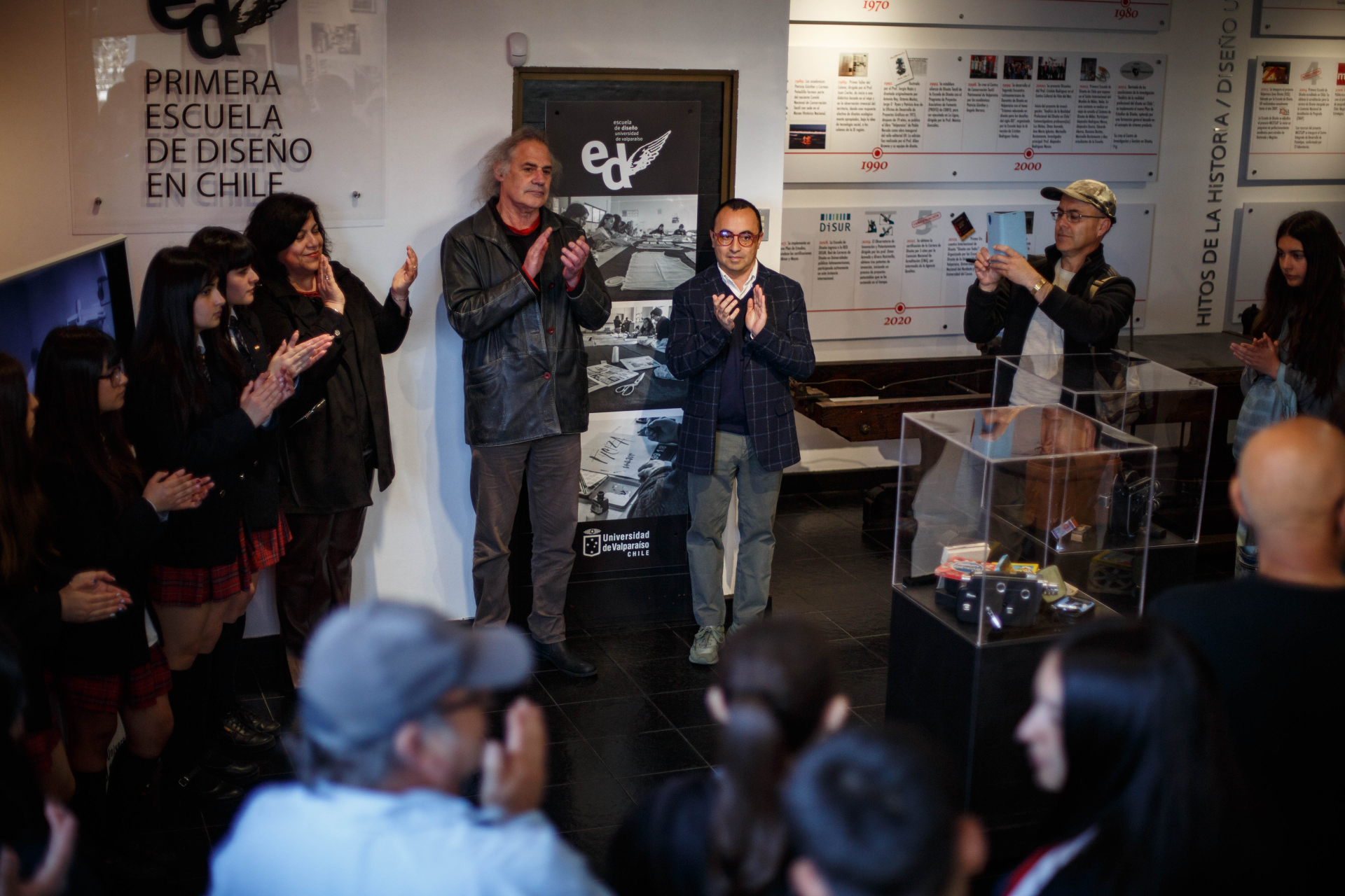 Con la presencia de estudiantes, académicos, alumnas y alumnos del colegio Sagrados Corazones Monjas Francesas de Viña del Mar, se realizó la inauguración de la muestra “Traspasos de la memoria”, en la Sala Rojas de la Escuela de Diseño UV.