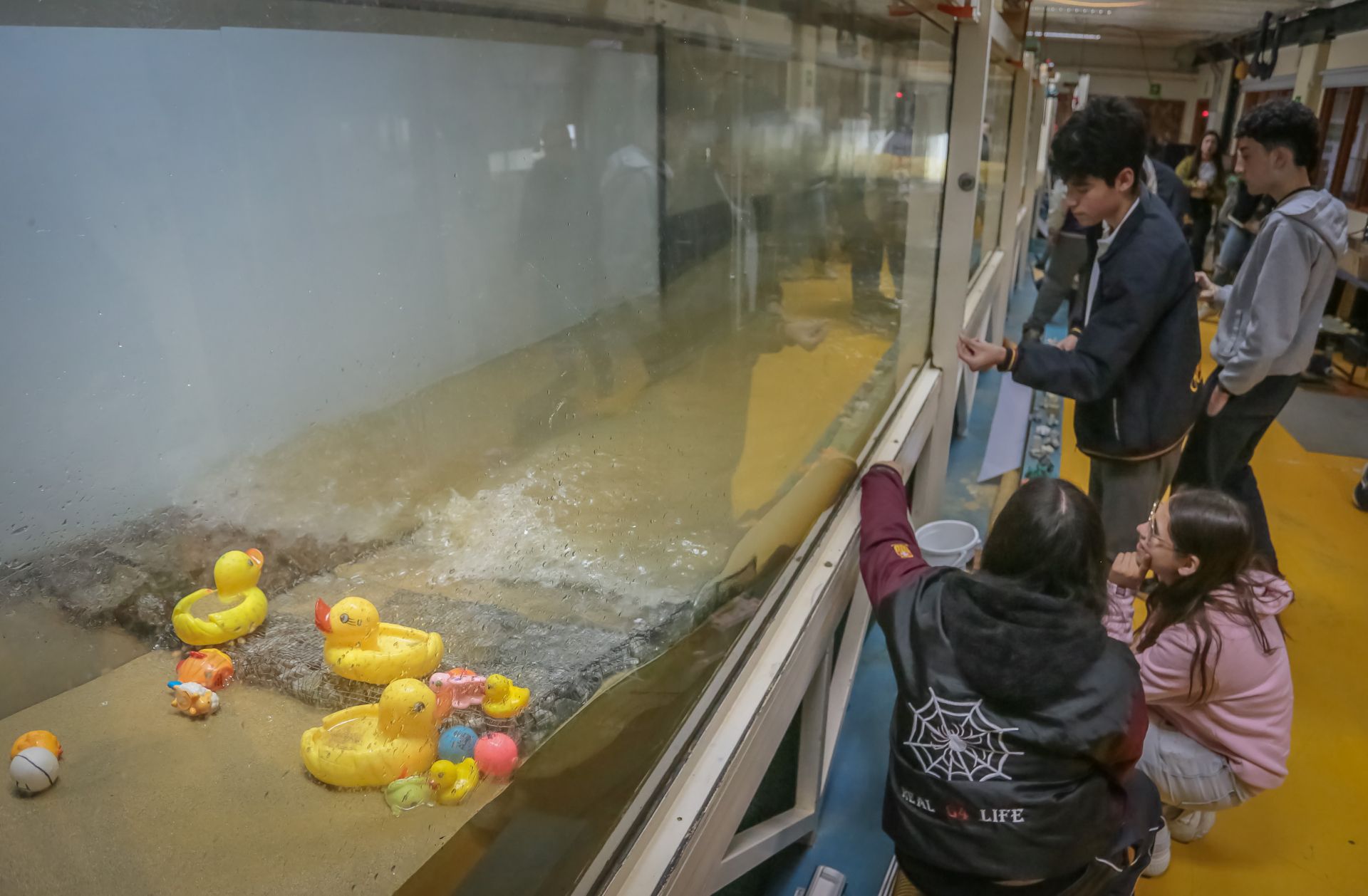 Las actividades prácticas en el Labocéano están a cargo de la ingeniera civil oceánica Alexandra Bruna, quien organizó el trabajo práctico tendiente a identificar los parámetros del oleaje.