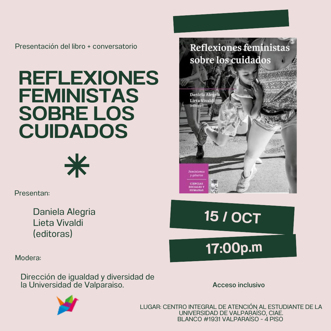 En el marco de esta actividad, el miércoles 15, a las 17:00 horas, tendrá lugar la presentación del libro “Reflexiones feministas sobre los cuidados”, de las editoras Daniela Alegría y Lieta Vivaldi.
