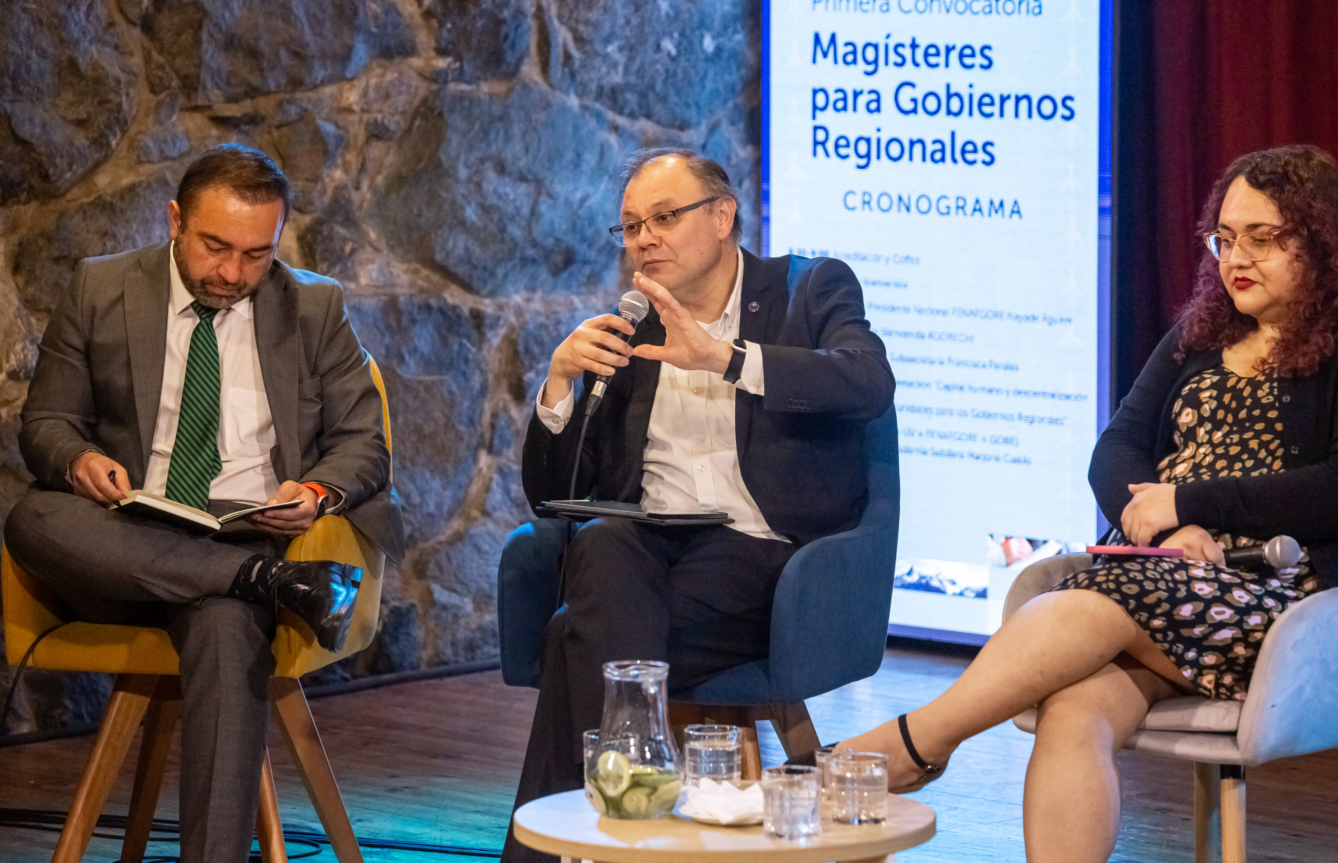 El hito de lanzamiento consideró el panel de conversación “Capital humano y descentralización, desafíos y oportunidades para los gobiernos regionales”, que contó con la participación de representantes de la UV y la UDD y de los gobiernos regionales.