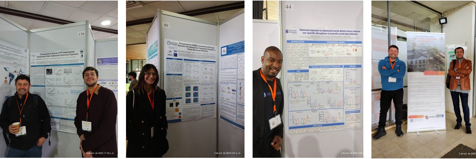 Entre los simposios más destacados figuraron “Mechanisms of Brain Dynamics: Multiscale Computational Models and Translational Insights”, coordinado por el doctor Vicente Medel (Universidad Adolfo Ibáñez); “Encoding Fear Memories Outside the Box”, liderado por el doctor Alexies Dagnino (Universidad de Valparaíso); “Fueling the Mind: The Role of Energy Metabolism in Neural Learning and Behavior”, coordinado por el doctor Pedro Maldonado (Universidad de Chile), y “Huellas en el camino neurocientífico de la doctora Katia Gysling: Su impacto en Chile y el mundo”, coordinado por la doctora Paola Haeger (Universidad Católica del Norte).