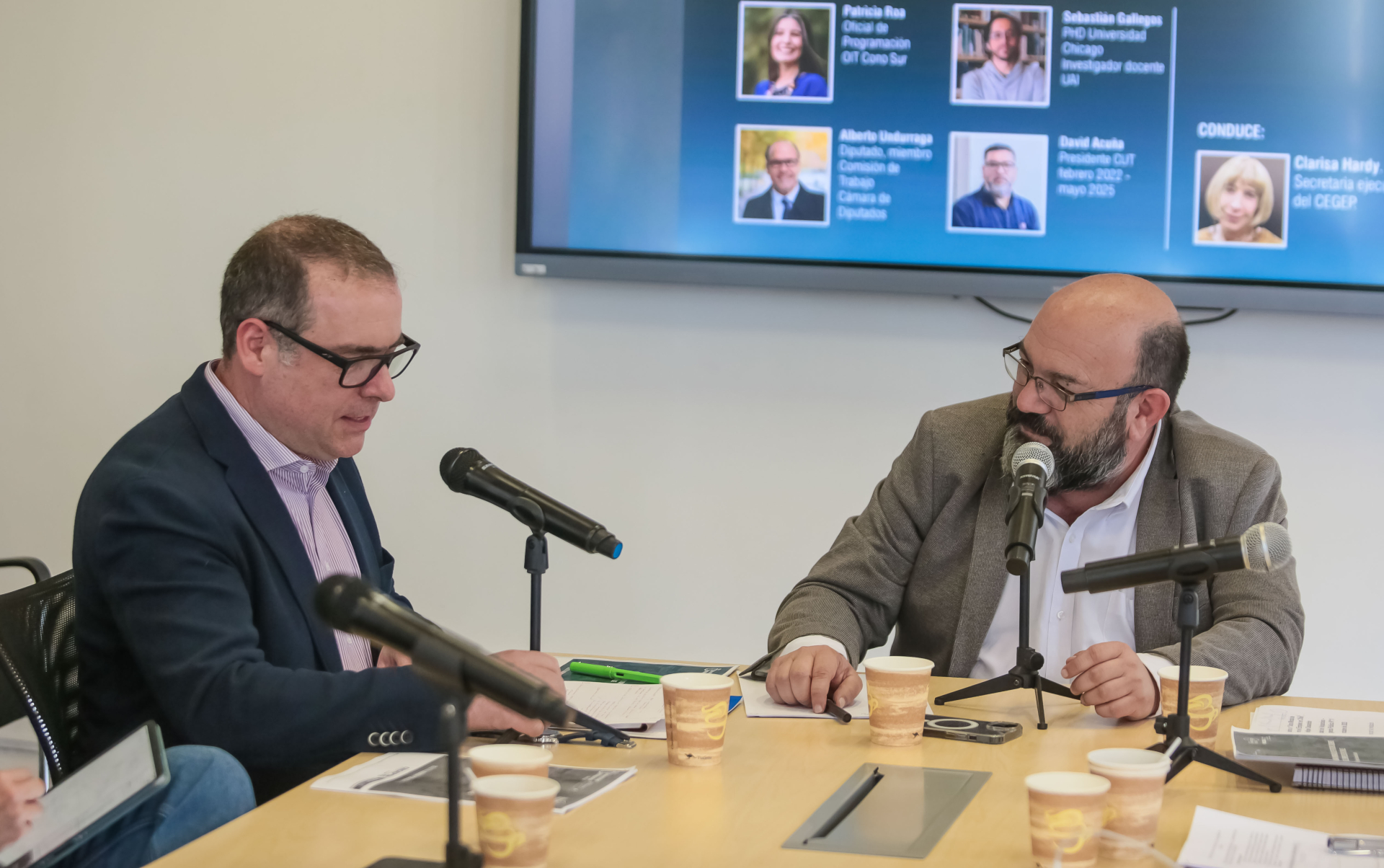 En el encuentro participaron el diputado Alberto Undurraga, miembro de la Comisión de Trabajo de la Cámara; Patricia Roa, oficial de Programación de la OIT Cono Sur; Sebastián Gallegos, PhD por la Universidad de Chicago, investigador docente de la Universidad Adolfo Ibáñez; David Acuña, presidente de la CUT 2022-2025, y Felipe Ossandón, magíster en Políticas Públicas del Departamento de Ingeniería Industrial de la Universidad de Chile.