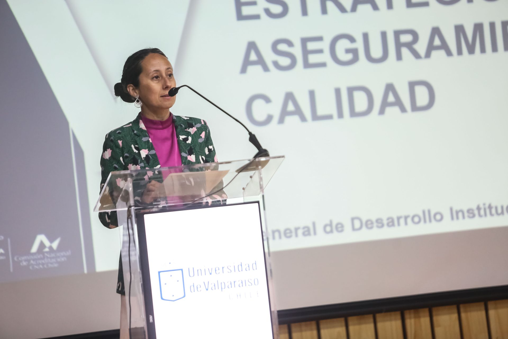 En tanto, la directora general subrogante de Desarrollo Institucional y Aseguramiento de la Calidad, Paula Quiroz, quien también intervino al inicio de la actividad, destacó el aporte que implica el ejercicio de compartir reflexiones y experiencias en este ámbito: “Cada una de ellas refleja el compromiso de nuestra comunidad universitaria con la consolidación de la cultura de la calidad, entendida como una forma de trabajar colaborativamente, aprender de la experiencia y proyectar la mejora continua en todos los ámbitos de nuestra gestión, lo que sin duda nos acercará un paso más a la excelencia institucional”, aseguró.
