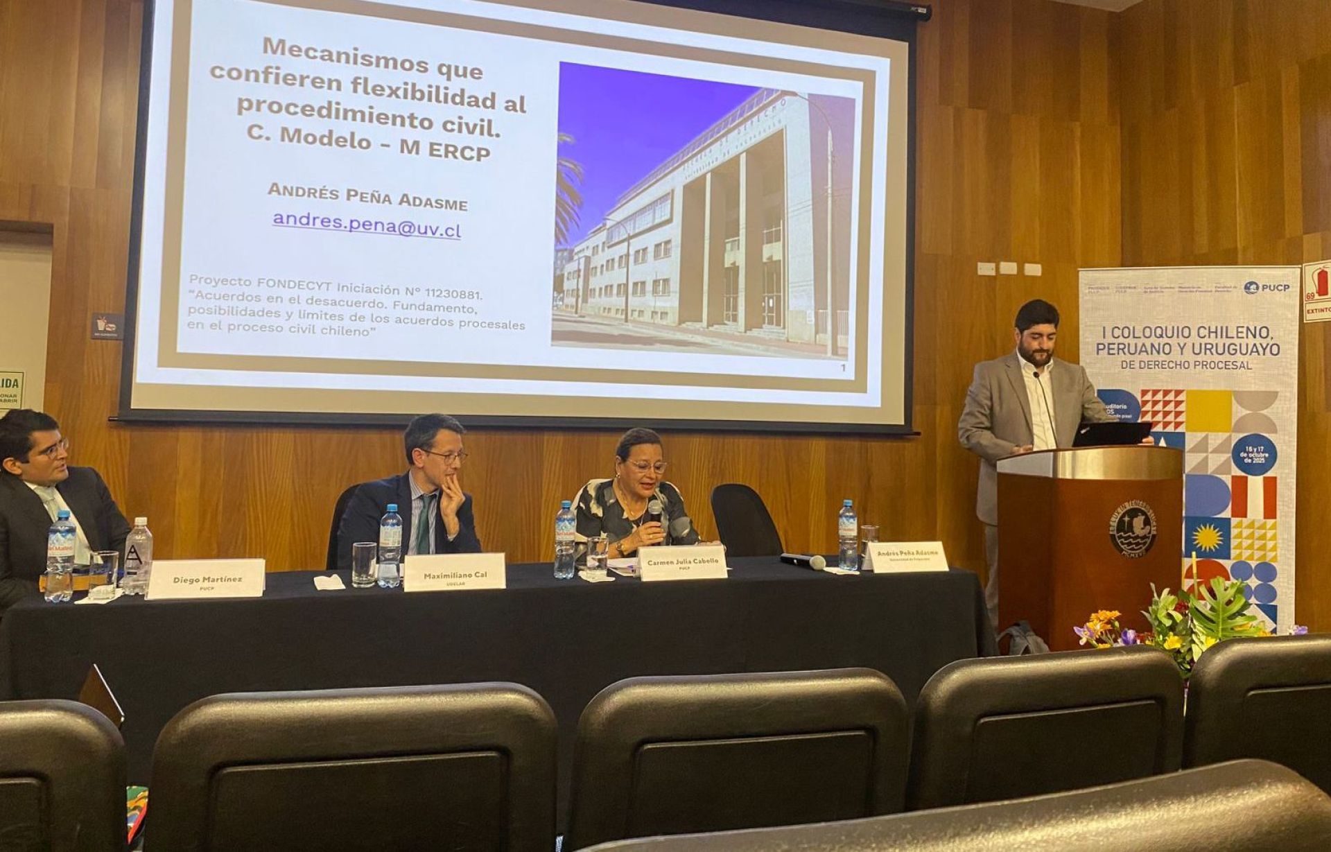 El profesor de la Escuela de Derecho de la Universidad de Valparaíso, Andrés Peña, participó recientemente en el Primer Coloquio Chileno, Peruano y Uruguayo de Derecho Procesal, llevado a cabo en la Pontificia Universidad Católica del Perú, en la ciudad de Lima.