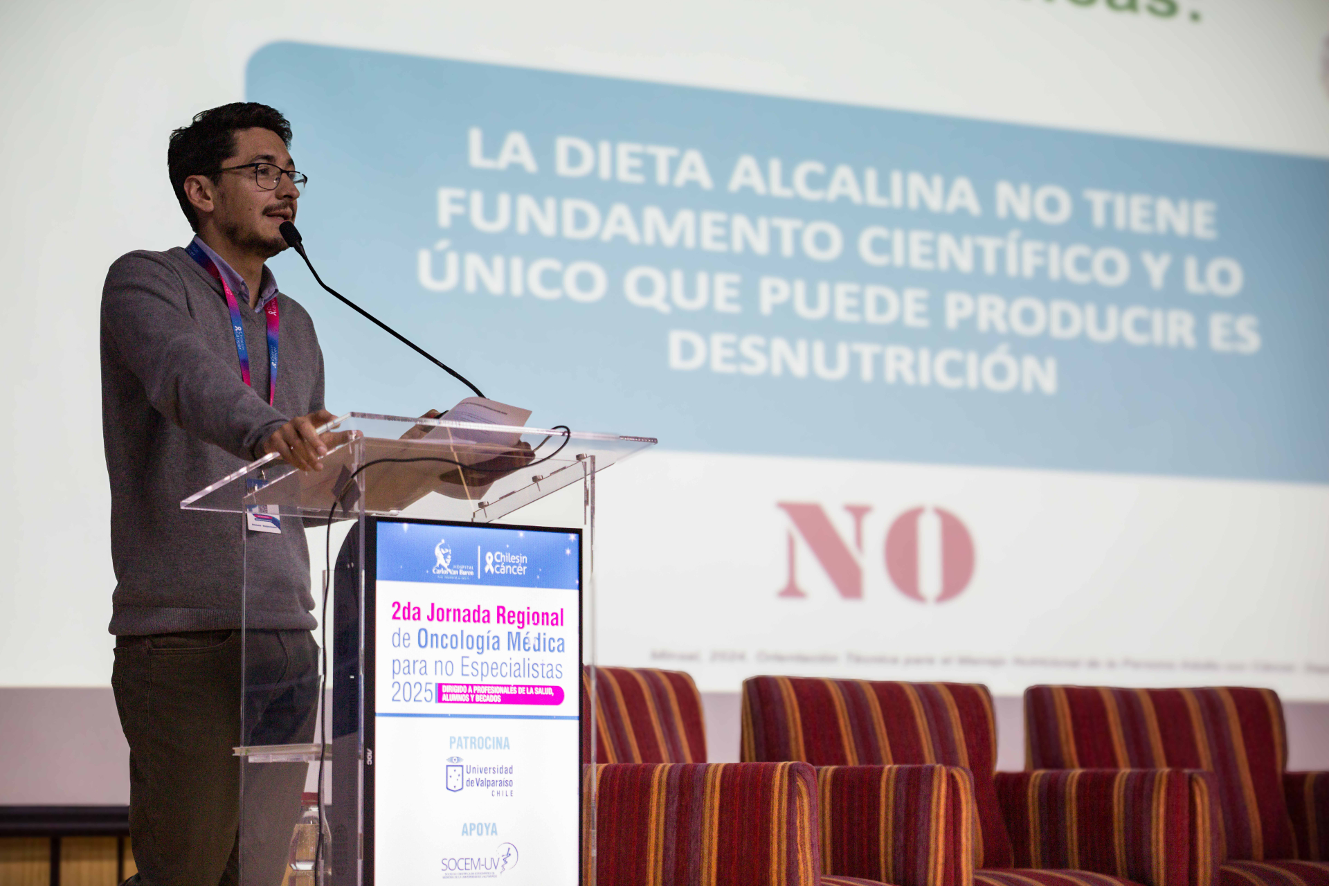 El programa inició con una serie de ponencias sobre generalidades del cáncer, opciones de tratamiento disponibles, mitos asociados a la nutrición oncológica y consejos prácticos para profesionales de la salud no especializados a la hora de atender de urgencia a un paciente oncológico. Estas presentaciones estuvieron a cargo de los médicos José Peña, Daniel Canteros y Paola Araya, y la enfermera de práctica avanzada Belén Valenzuela.