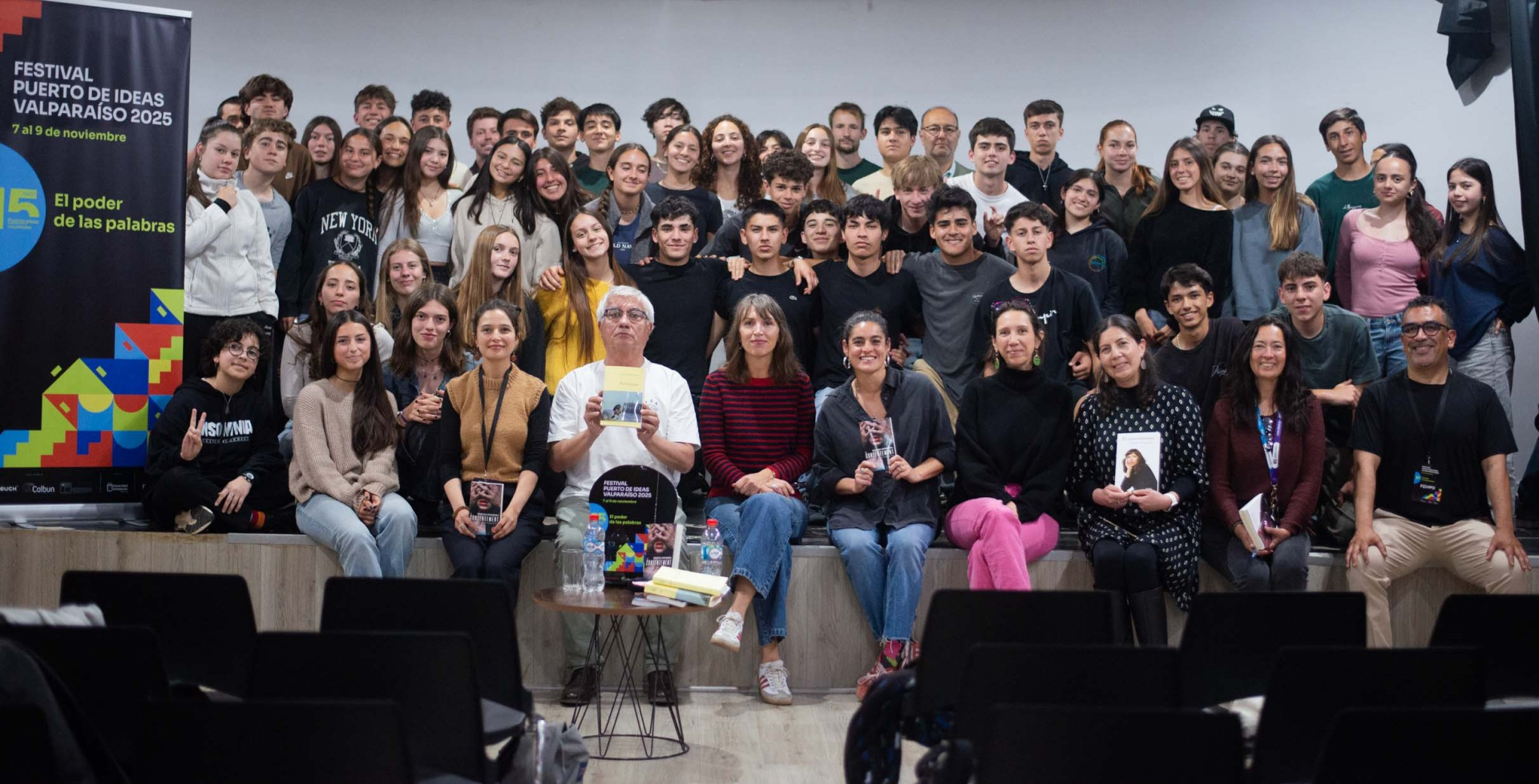 El tercer momento y final de la conversación consistió en un espacio abierto a las preguntas del público asistente, entre el que figuró un grupo de escolares del Colegio GEA de Quilpué.