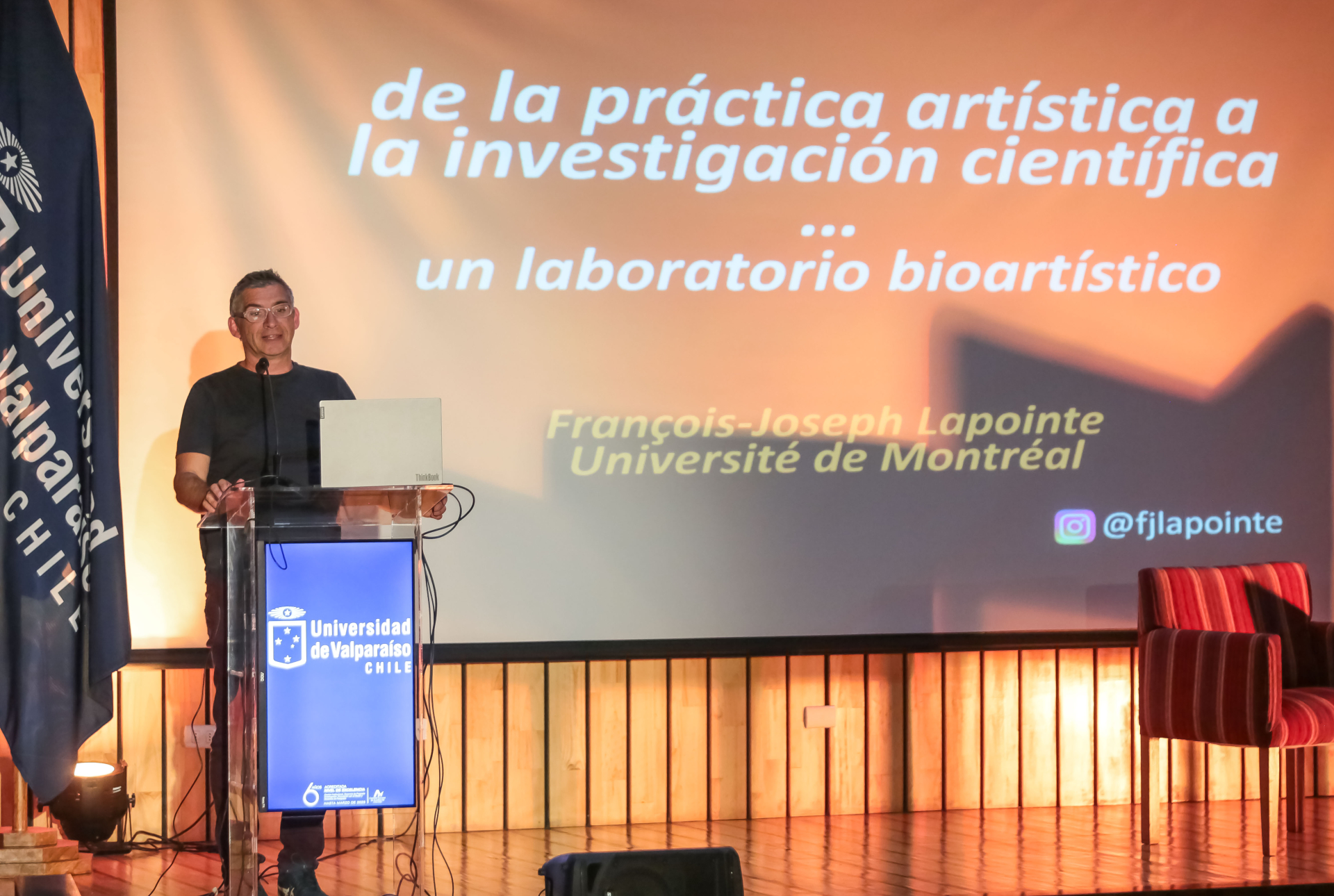 La jornada contó con la conferencia “De la práctica artística a la investigación científica: un laboratorio bioartístico”, a cargo de François-Joseph Lapointe, artista y científico de la Universidad de Montreal, Canadá.