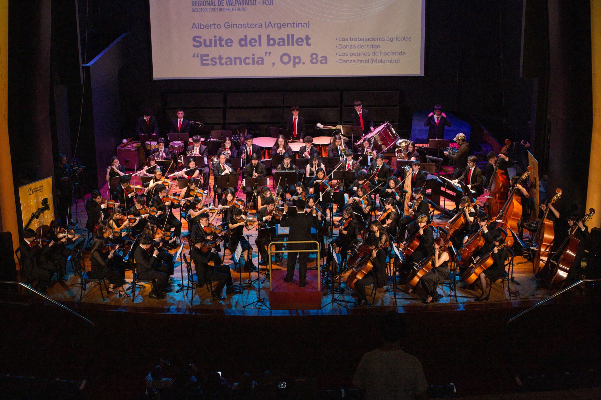 La Orquesta Sinfónica Juvenil Regional de Valparaíso, dirigida por Jesús Rodríguez, fue ovacionada por el público.