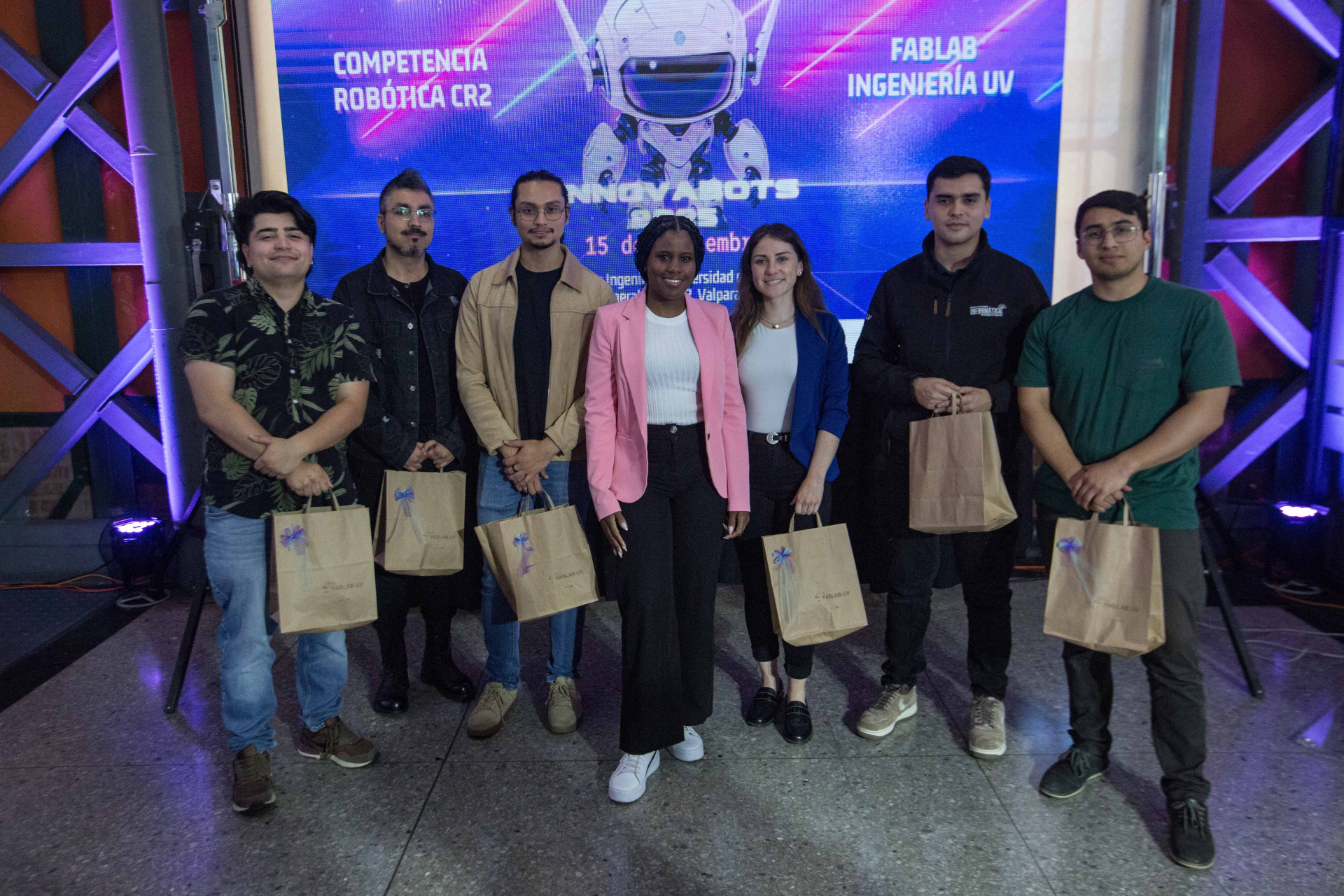 Dayana Palma, coordinadora del FabLab UV y de Innovabots 2025, calificó la competencia como “una iniciativa que tuvo una convocatoria significativa de estudiantes de enseñanza media y sus docentes, por eso agradecemos el apoyo de los colegios, en especial de aquellos que forman parte del programa PACE de toda la región, quienes llegaron hasta la Facultad de Ingeniería UV para mostrar su innovación en robótica y todo lo que aprendieron durante el bootcamps. Una mención especial a todos los mentores UV, estudiantes que entregaron su alma y corazón para que este proyecto fuera un verdadero éxito”.
