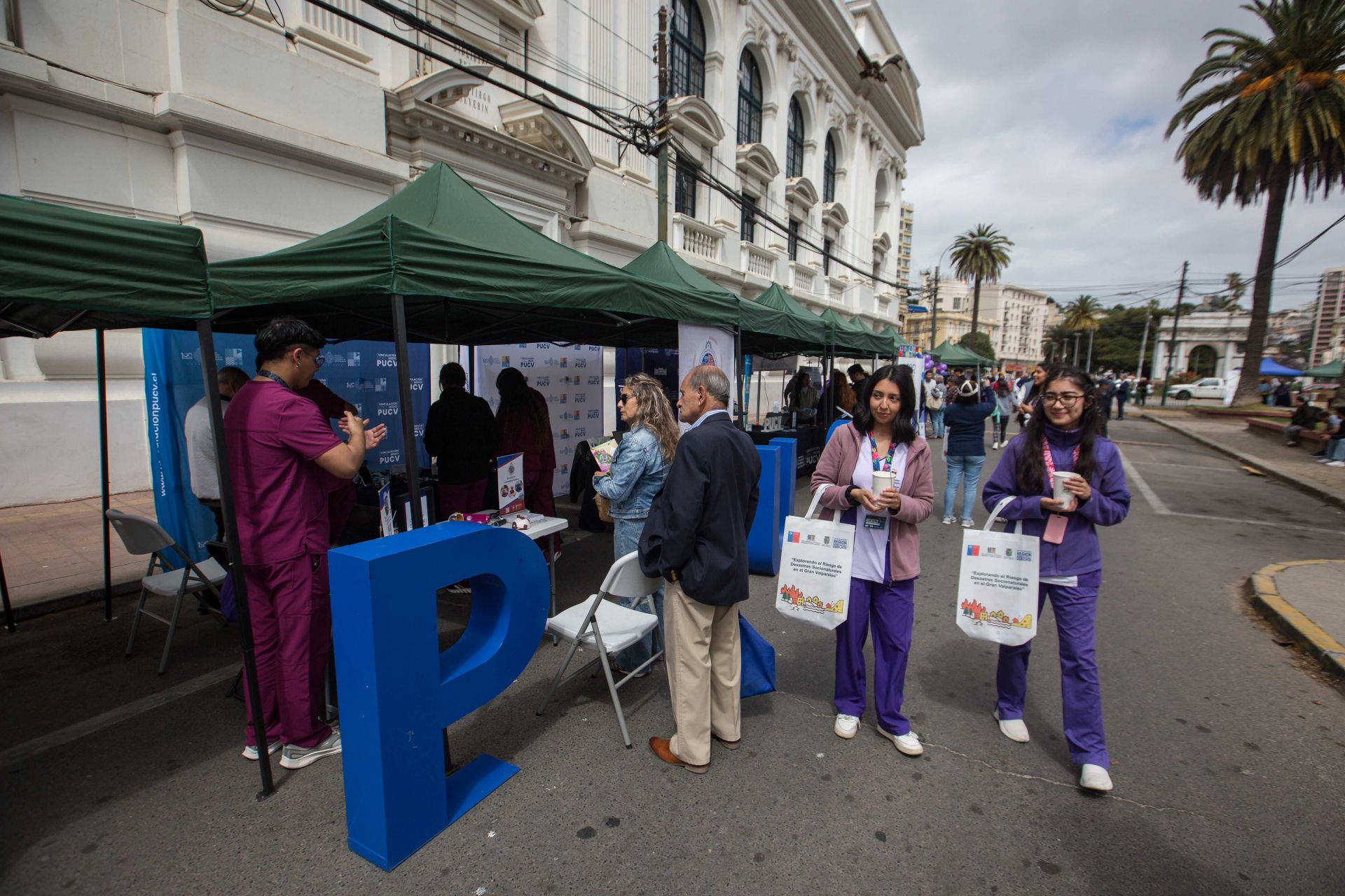 Se refirió asimismo a algunas de las acciones presentadas en la feria: “Tenemos, por ejemplo, un stand de la Comisión Alerta, que trabaja en todo lo que tiene que ver con prevención de VIH/Sida en estudiantes de toda la educación superior. En el caso de la Universidad de Valparaíso tenemos a Gerópolis, que hace un trabajo muy valorado por los adultos mayores de Valparaíso y también de Viña del Mar. Está nuestra Clínica de Reproducción Humana, que también está al servicio de la comunidad. Y la Universidad Técnica Federico Santa María, la Universidad de Playa Ancha, la Católica de Valparaíso, han traído también sus propios stands por las actividades que ellos realizan en favor de la comunidad”.