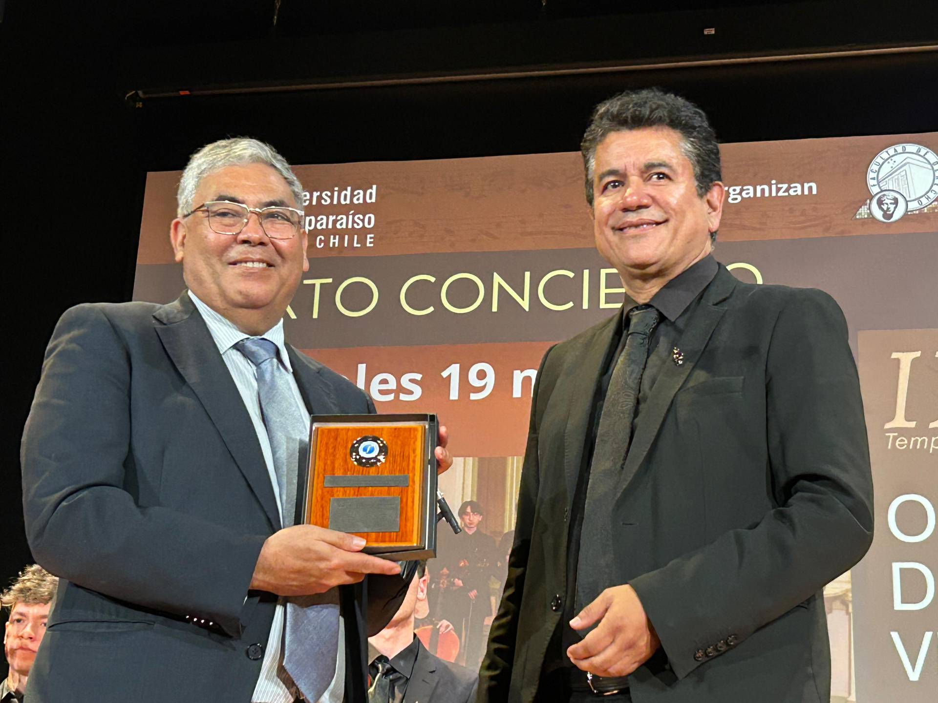 A su vez, el director de la Orquesta de Cámara Viña del Mar, Pablo Araya, hizo entrega al decano Ricardo Saavedra de un reconocimiento a la Facultad de Derecho, en agradecimiento por la invitación a ser parte de la Tercera Temporada de Conciertos de Primavera y por acercar la música a la ciudadanía.