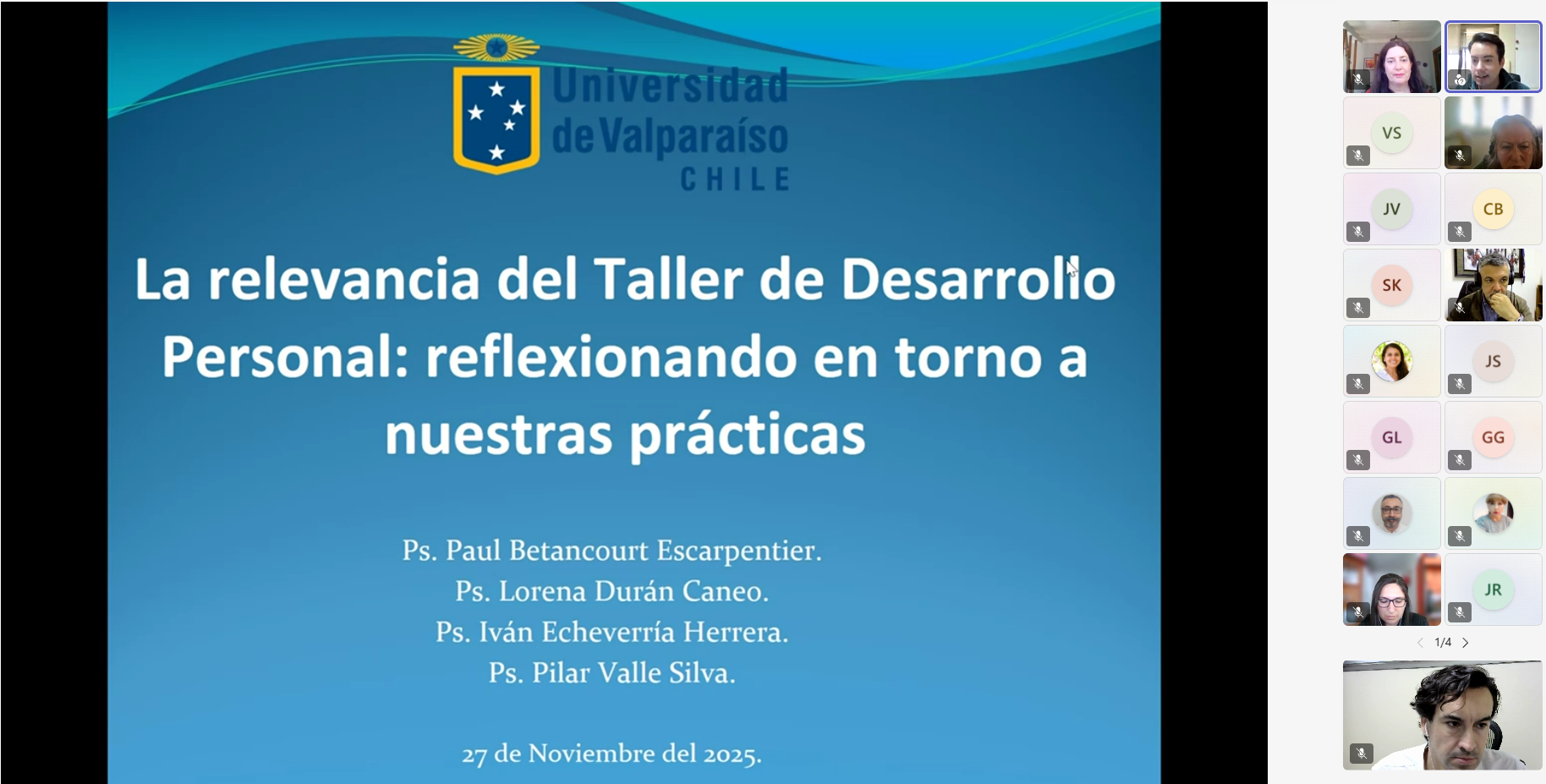 Las presentaciones estuvieron a cargo de Vanessa Kreisel (Escuela de Fonoaudiología), quien expuso orientaciones para favorecer la inclusión de estudiantes neurodivergentes; Paul Betancourt, Lorena Durán, Iván Echeverría y Pilar Valle (Escuela de Psicología), quienes compartieron la experiencia del taller de desarrollo personal como espacio formativo y de reflexión pedagógica; y Estefanía Cruz (Escuela de Obstetricia y Puericultura, Campus San Felipe), quien presentó un enfoque pedagógico basado en IA para fortalecer competencias de comunicación oral y escrita.