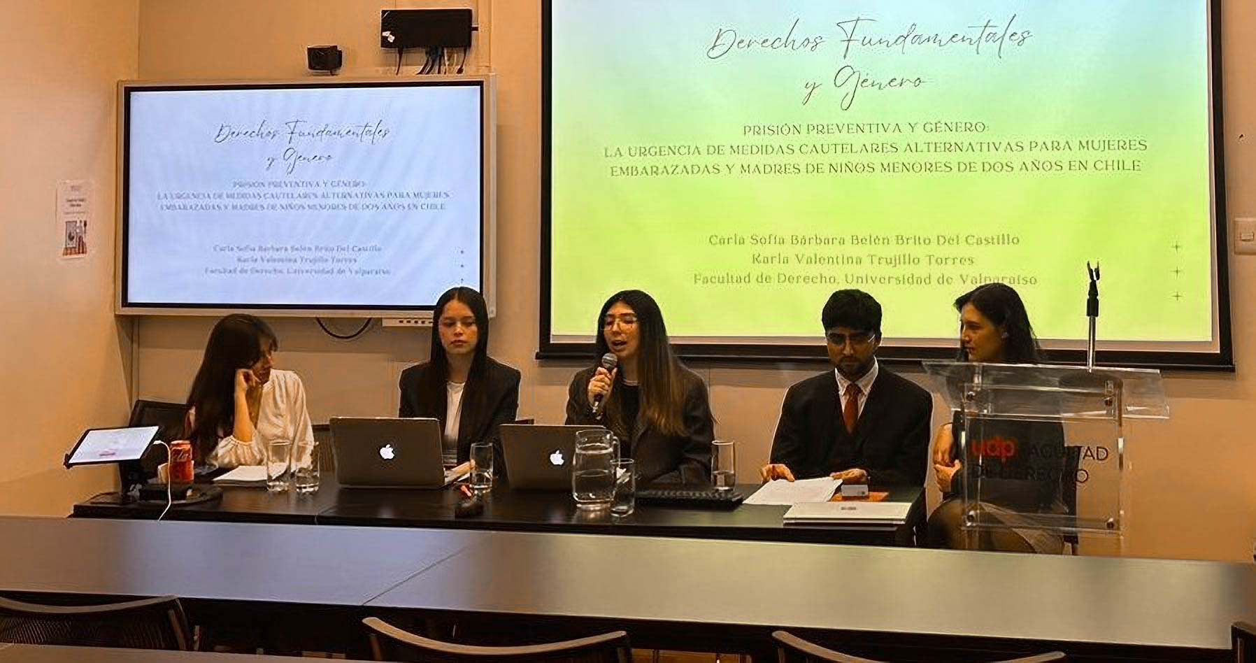 Las estudiantes de la UV fueron parte de la mesa de exposiciones “Teoría y Derecho Constitucional: Derechos fundamentales”, donde presentaron la ponencia conjunta “Prisión preventiva y género: La urgencia de medidas cautelares alternativas para mujeres embarazadas y madres de niños menores de dos años en Chile”.