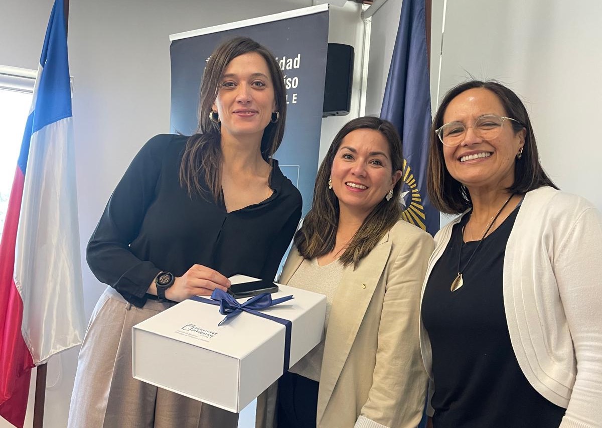 La profesora Moretti fue recibida por la coordinadora de Vinculación con el Medio, Katherine Cuevas; la jefa de carrera de Medicina Casa Central, Gloria Pino; y la directora del Laboratorio de Medicina Narrativa, Pamela Jofré.
