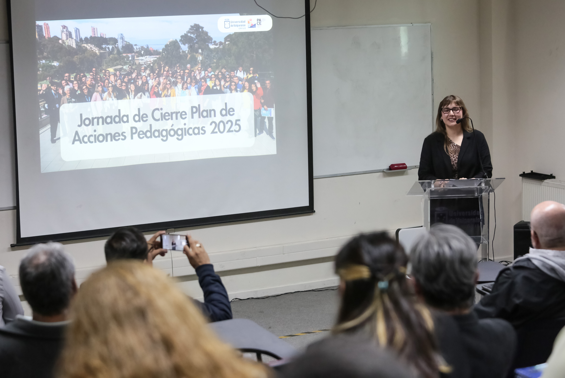 La jornada de cierre del Ciclo de Capacitación Docente 2025 consideró la participación, como expositora invitada, de la académica e investigadora de la Facultad de Ciencias de la UV, doctora Pamela Herrera, quien dictó la conferencia “Colaborar para aprender. Codocencia y motivación en la enseñanza del siglo XXI”.
