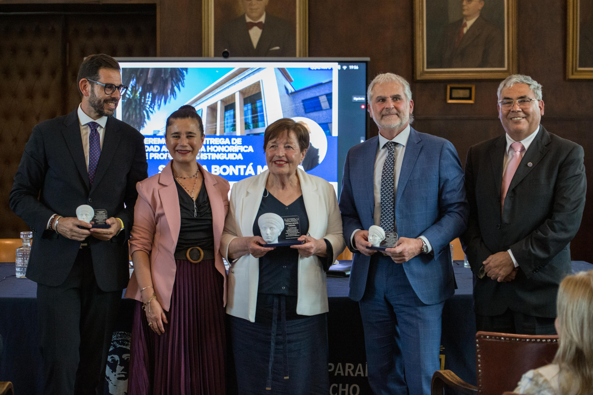 El diploma con el que se concedió la calidad honorífica de Profesora Distinguida a Susana Bontá fue entregado por el decano Ricardo Saavedra y la vicedecana Patricia Reyes, junto con un galvano conmemorativo de la ocasión, correspondiente a una réplica en miniatura de la “Donna”, escultura antigua de gran valor arqueológico que representa la cabeza de una dama romana de la época de los Antoninos, y que fue donada a la UV por la embajada italiana a mediados del siglo pasado.