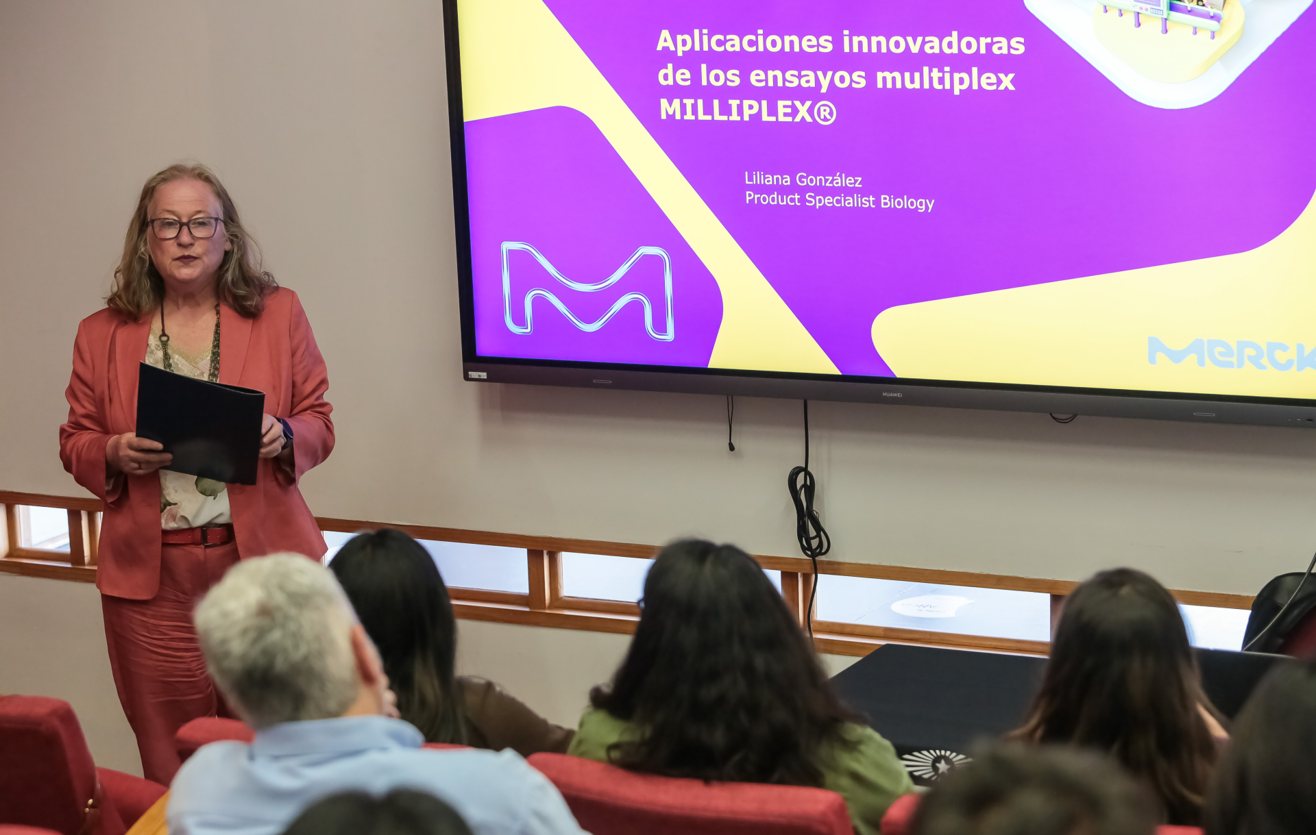 La actividad comenzó con la bienvenida de la decana Caroline Weinstein y la directora general de Postgrado y Postítulo, Angélica Mosqueda, seguida de una charla tecnológica sobre aplicaciones avanzadas de la plataforma Luminex, presentada por especialistas de Merck y Redeca. Luego, el espacio se abrió al networking con las y los académicos de cada programa, encuentros que abordaron desde toxicología hasta políticas públicas alimentarias, pasando por servicios de alimentación, farmacia asistencial, bioactividad de productos naturales y análisis clínico.