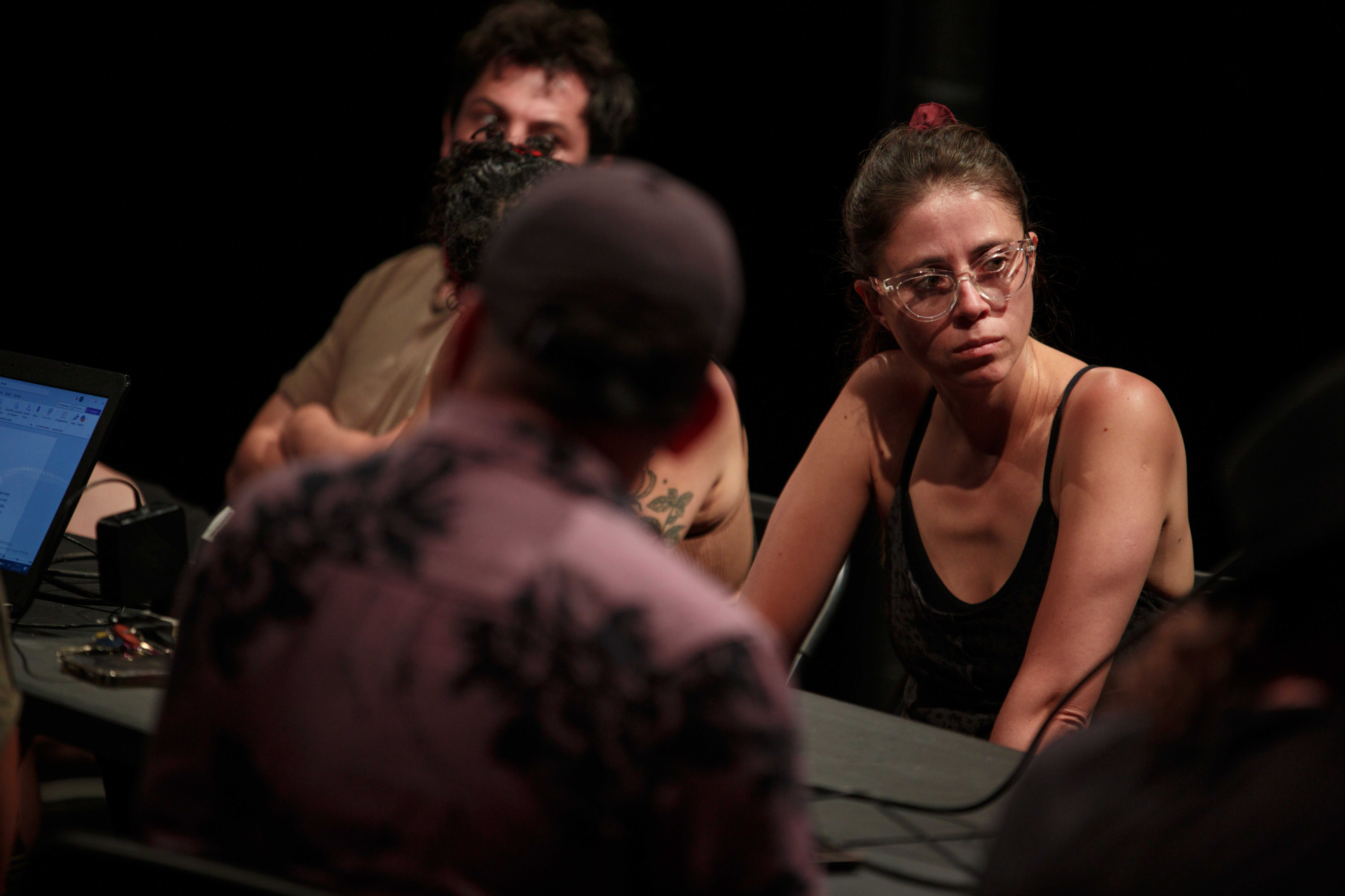 Claudio Marín asegura que “a través de la repetición y restructuración de la palabra buscamos un efecto, más que un significado literario, lo cual nos permite trabajar con el sonido desmantelando el concepto textocentrista que tiene el teatro, entregando una mayor libertad para movernos. Lo bonito de una residencia es que no estamos obligados a mostrar un resultado artístico, sino más bien a aprender de otros especialistas”.