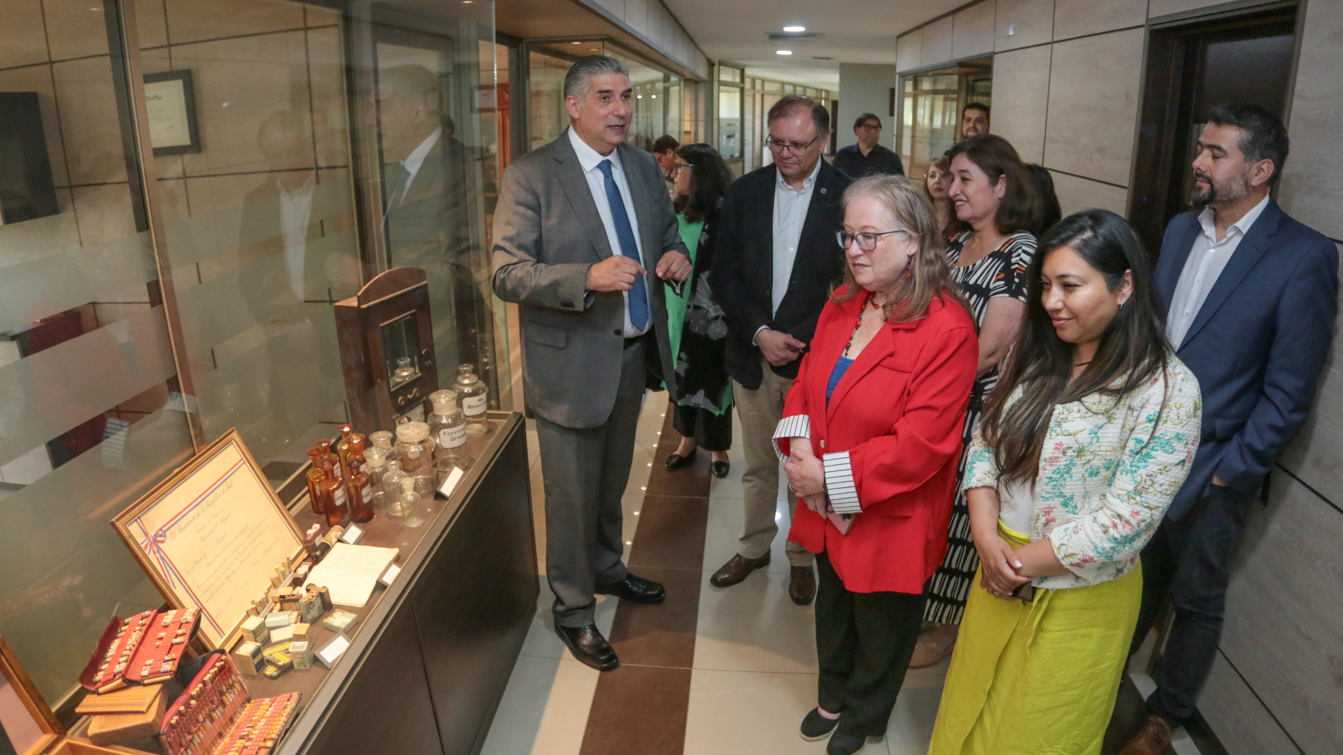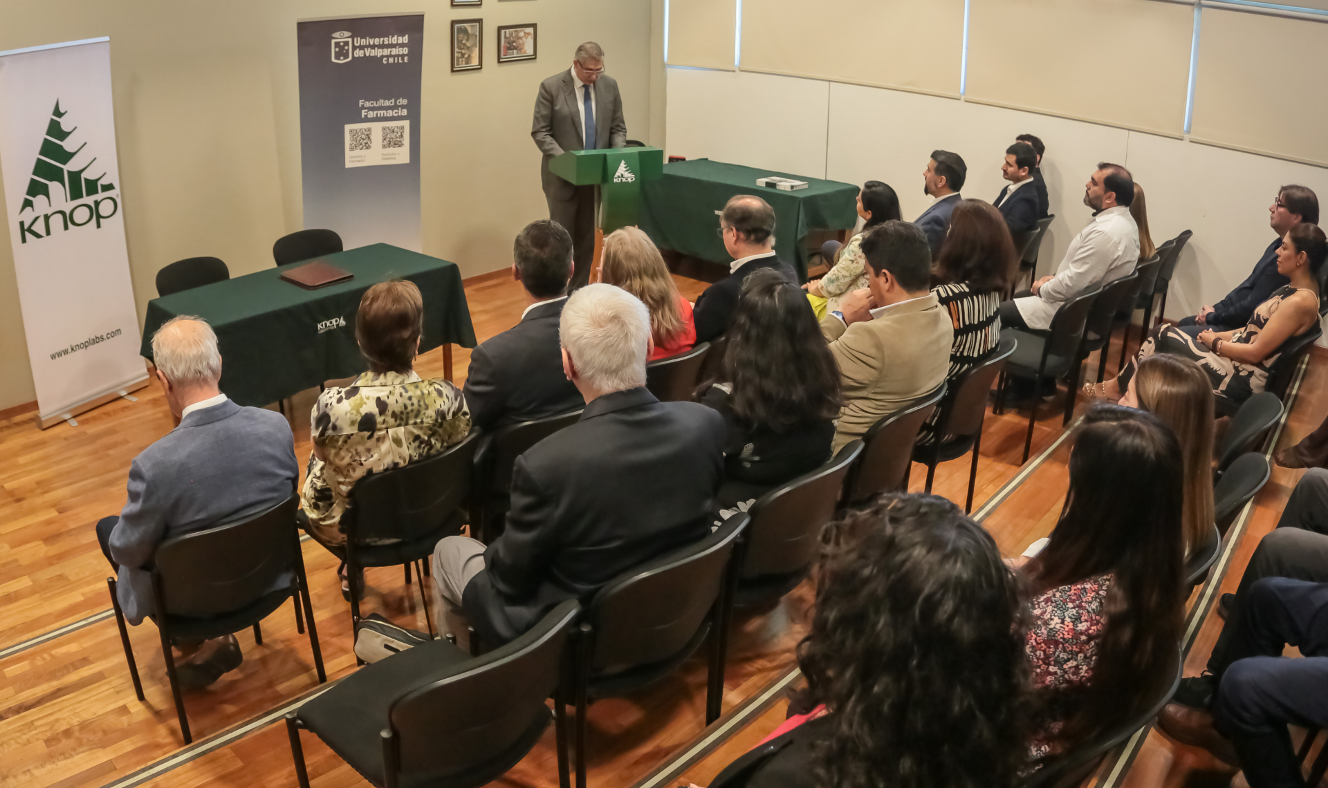 La firma del convenio se realizó en dependencias de Knop Laboratorios y contó con la presencia de autoridades universitarias y representantes del directorio de la empresa. Tras la ceremonia, la delegación de la Universidad de Valparaíso fue invitada a recorrer las instalaciones administrativas y el museo institucional, donde se exhibe la historia centenaria de esta empresa pionera en medicina natural en nuestro país, con piezas vinculadas a su fundador, Reinaldo Knop, que dan cuenta de su evolución desde 1926. La visita incluyó los laboratorios de control de calidad y oficinas administrativas.