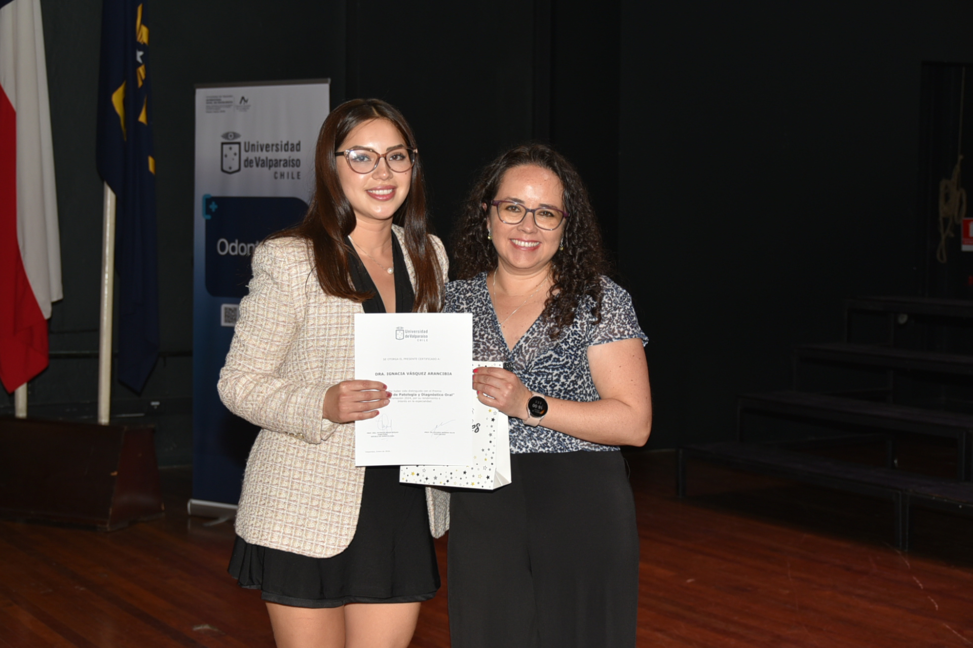 Uno de los momentos más significativos fue la entrega de distinciones a estudiantes que sobresalieron en distintas áreas de su formación. En el ámbito académico y disciplinar, se reconoció a Ignacia Vásquez Arancibia (Cirugía y Traumatología Bucal y Maxilofacial, Patología y Diagnóstico Oral y premio Facultad de Odontología); Pamela Aguirre Aros (Endodoncia, Premio Sociedad de Endodoncia, Mejor Internado); Francisca Jorquera López (Materiales Dentales, Premio ACHEO a la Excelencia Académica); Javier Llancabur Olivares (Odontología Preventiva, Formación General); Gabriel Vargas Valdebenito (Odontopediatría, Premio Escuela de Odontología); Fernanda Godoy Garrido (Operatoria Dental, Sociedad de Odontología Estética y Biomateriales Restauradores); Rodrigo Coke González (Ciencias Básicas, Prótesis Fija; Prótesis Removible); Marcela Segura Lira y Kiara Figueroa Gamboa (Salud Pública); Nicolas Leiva Castillo (Periodoncia, Sociedad de Periodoncia); Sthephania Caneo Toledo (Imagenología Oral y Maxilofacial) y Keila Barroilhlet Hoffmann (Sociedad de Odontopediatría), entre otros.