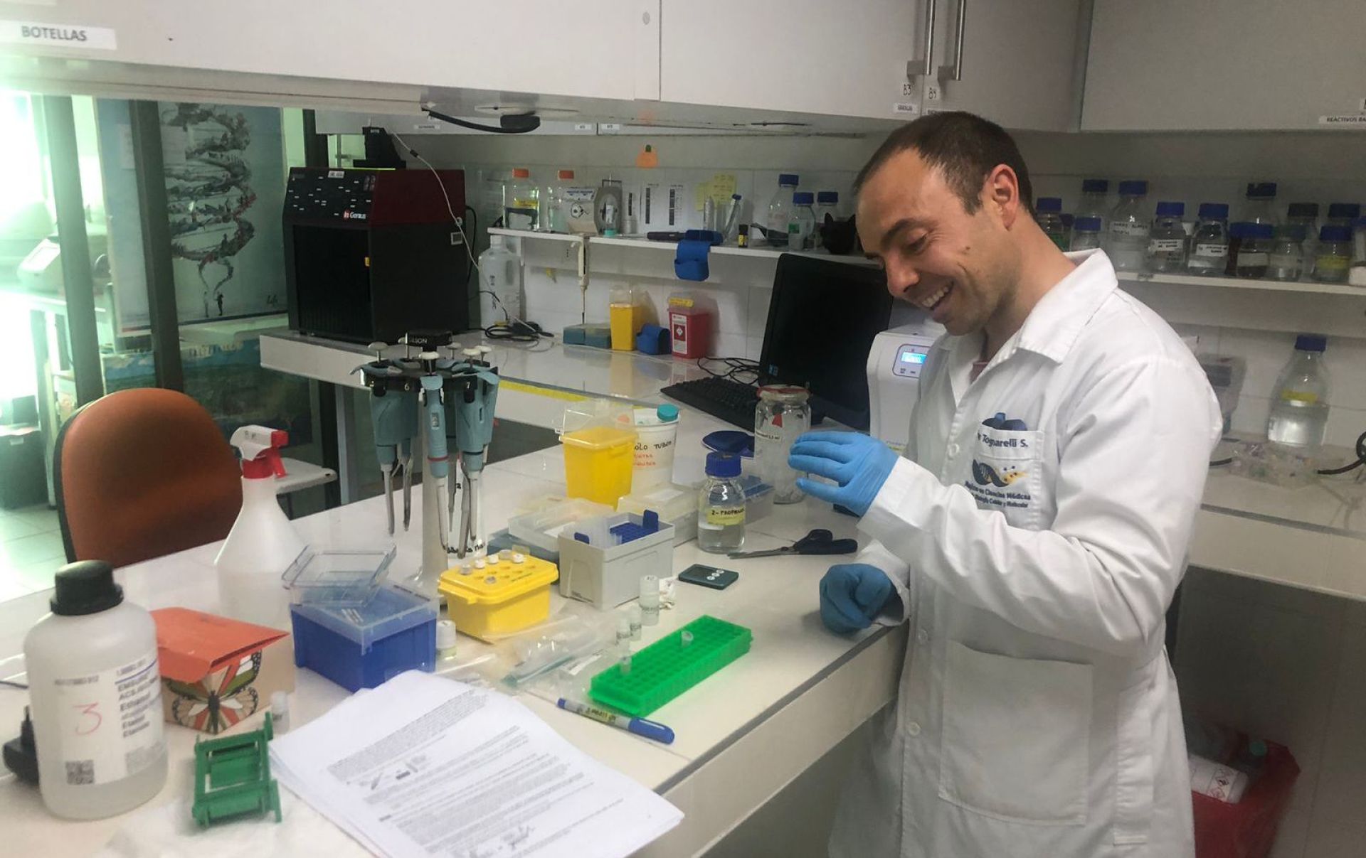 “Llevamos colaborando varios años con el doctor Fernández. En esta ocasión preparamos la librería que consiste en cortar el ADN en pedazos pequeños y lo ingresamos al secuenciador, que en un plazo de 24 a 36 horas lee todo el ADN de la bacteria. Luego hacemos un proceso de bioinformática llamado ensamblaje y de esta forma podemos determinar si está dentro de una familia o género de bacterias, identificar genes y obtener mucha información. Determinar la especie exacta es lo más complejo”, detalló Javier Tognarelli.