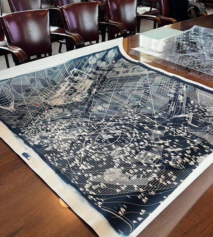En su presentación, Sebastián Tapia compartió parte de su producción artística y reflexiva, incluyendo su exploración sobre los llamados “edificios fantasmas”, abriendo una mirada crítica sobre las arquitecturas ausentes y las memorias latentes en el territorio.