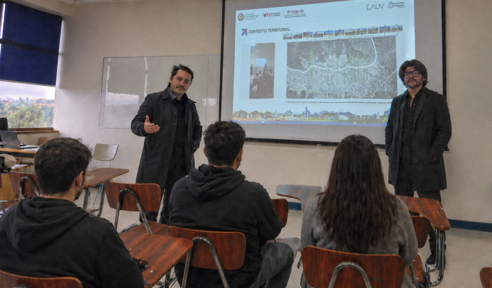 “Formación temprana en arquitectura a través de la Vinculación con el Medio: aprendizaje situado e investigación con sentido local en el primer año de Arquitectura” fue la ponencia que dictaron José Antonio Sánchez y Reinaldo Chong, académicos de la Escuela de Arquitectura UV, en el Congreso Internacional Más Patagonia, evento internacional organizado por la Universidad San Sebastián en Puerto Montt.