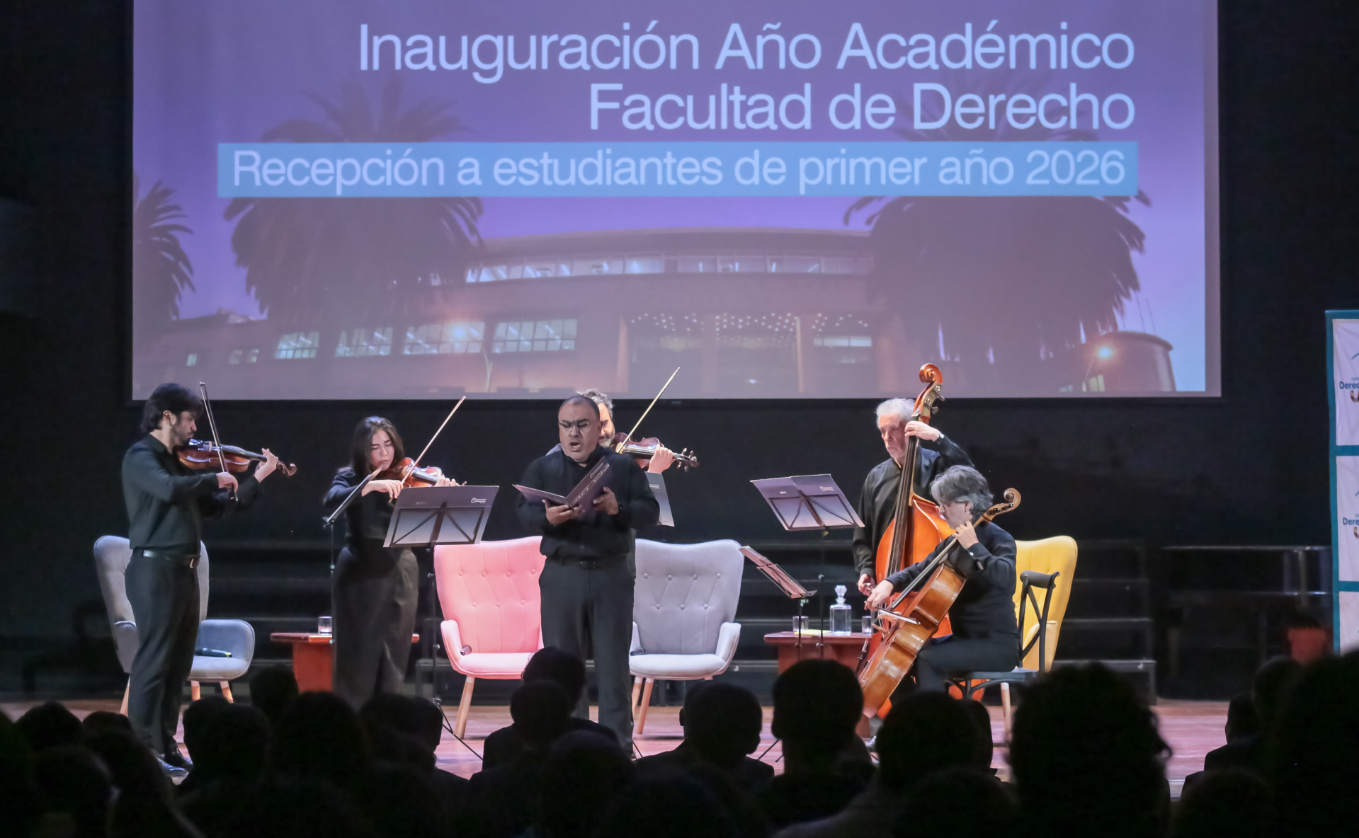 Las palabras de bienvenida de la actividad fueron entregadas por el decano Ricardo Saavedra, quien destacó el carácter simbólico de la inauguración del año académico como un momento de encuentro entre tradición y renovación. En su intervención subrayó la importancia de incorporarse a una comunidad con una sólida trayectoria en la formación jurídica, invitando a las y los estudiantes de primer año a asumir con responsabilidad y sentido crítico los desafíos propios del estudio del Derecho. Asimismo, enfatizó que esta etapa no solo implica la adquisición de conocimientos, sino también el desarrollo de una vocación pública orientada al servicio de la sociedad, y profundizó sobre los distintos avances en los que se está trabajando en la Escuela de Derecho.