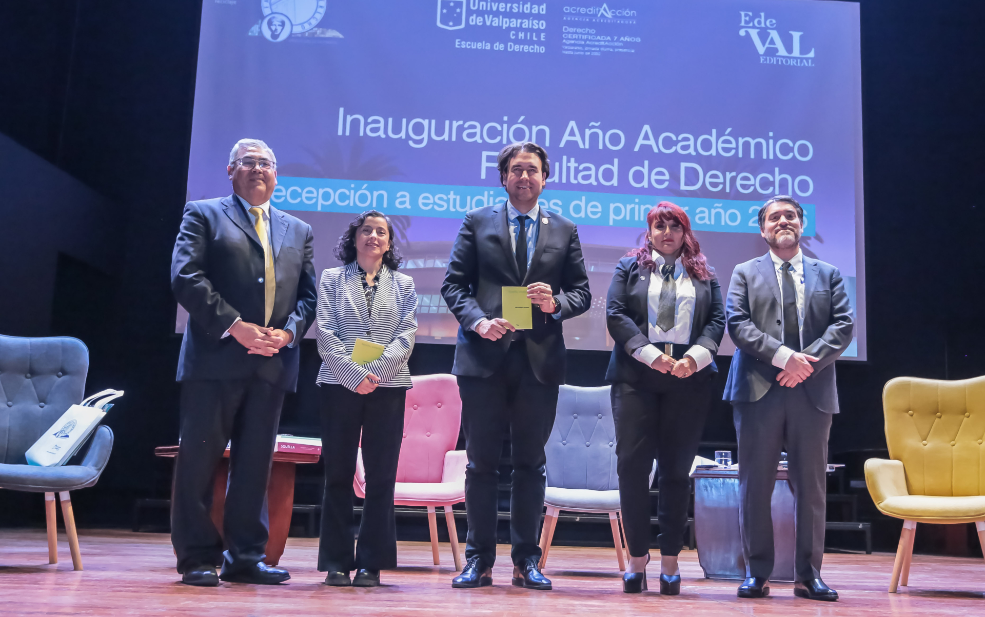 Estudiantes de primer año fueron parte de la bienvenida oficial de la unidad académica, ocasión que contó con las palabras del profesor emérito de la UV, Agustín Squella.