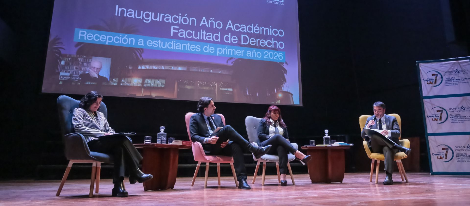En una solemne ceremonia llevada a cabo en el Aula Magna Victorio Pescio Vargas, la Facultad de Derecho de la Universidad de Valparaíso llevó a cabo su actividad de inauguración oficial del año académico y recepción de los estudiantes de primer año 2026, ocasión en que se realizó la presentación del libro “Squella, emérito” del sello editorial Edeval, obra que documenta el acto académico en que se otorgó —el 18 de mayo de 2023— la calidad honorífica de profesor emérito de la Universidad de Valparaíso a Agustín Squella Narducci y que corresponde a una de las obras ganadoras del Primer Concurso de Publicaciones Académicas del sello editorial Edeval, realizado en 2025.