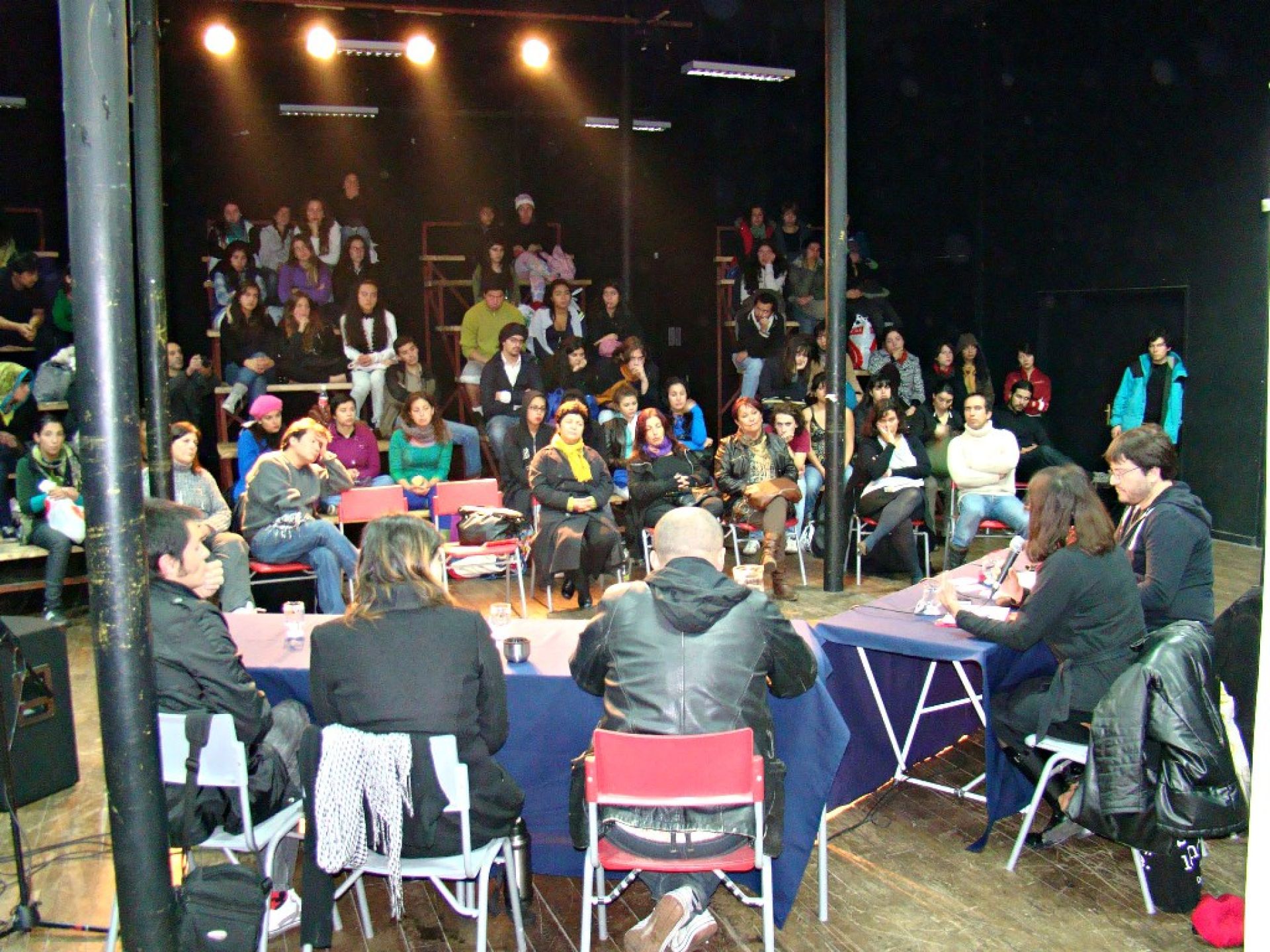 Una de las actividades destacadas del programa fue el foro Escuela de Espectadores, realizado en la sede de la carrera, en avenida Brasil, y que contó con las intervenciones de Javier Ibacache, periodista y crítico teatral; María Soledad Lagos, dramaturga; Luis Barrales, dramaturgo, director y reciente ganador del Premio Altazor, y Andrés Hernández, director de la compañía Los Cuatro Notables.