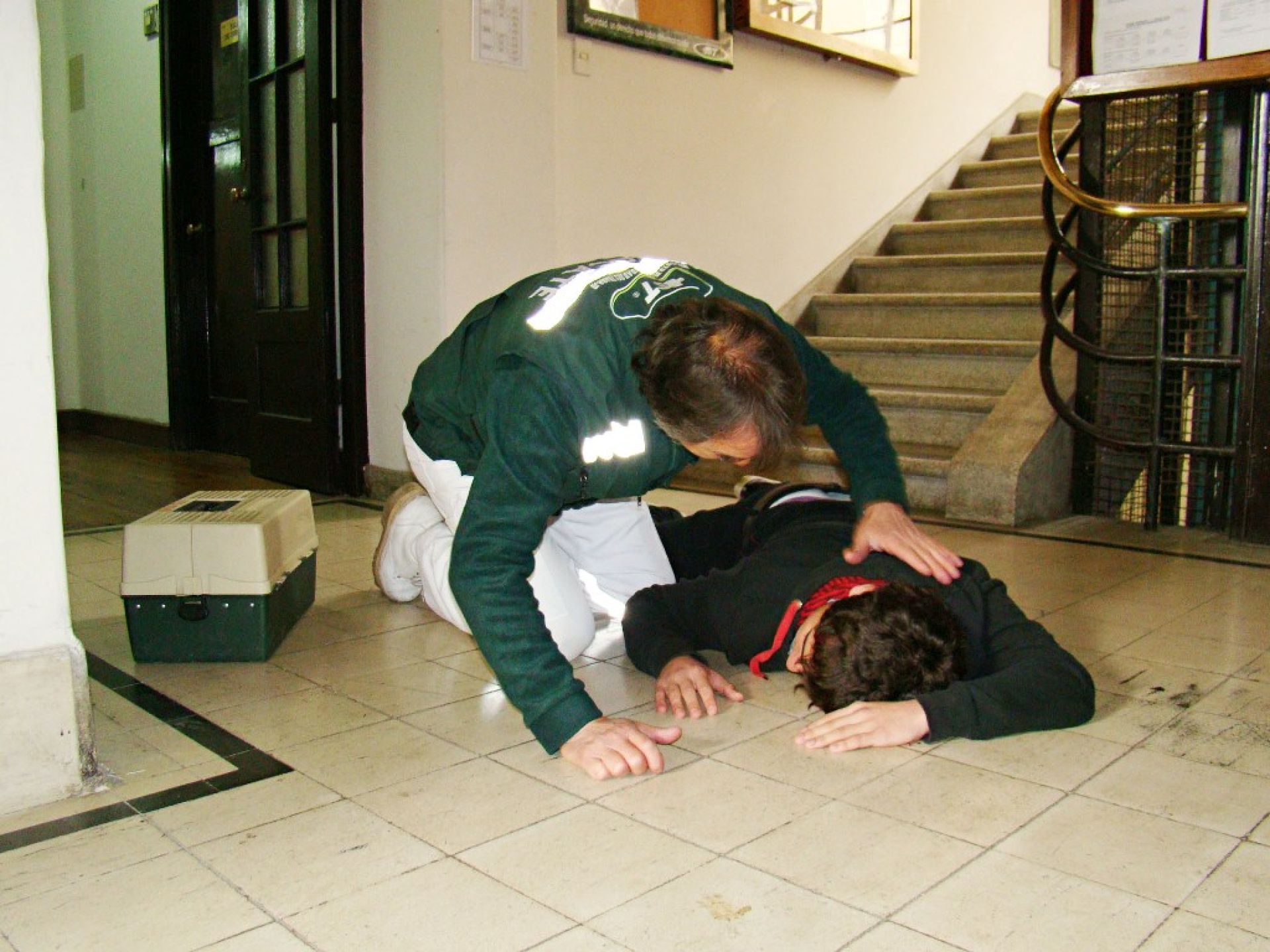 Profesores, funcionarios y estudiantes fueron testigos de esta operación en que todos colaboraron, incluyendo la participación de un estudiante que simuló un accidente para ser rescatado por personal del IST.