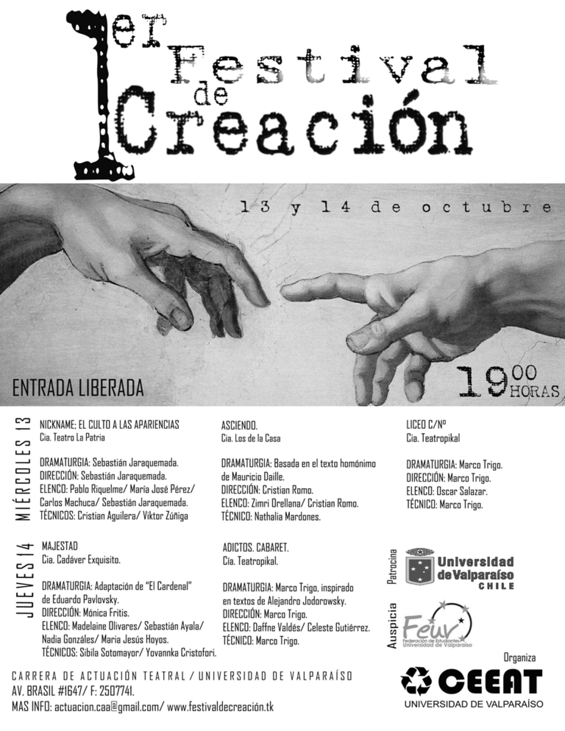 La carrera de Actuación Teatral de la Universidad de Valparaíso celebrará su Semana de Aniversario, del martes 12 al viernes 15, con diversas actividades relacionadas con el quehacer teatral. Todo el programa es abierto a la comunidad y completamente gratuito.