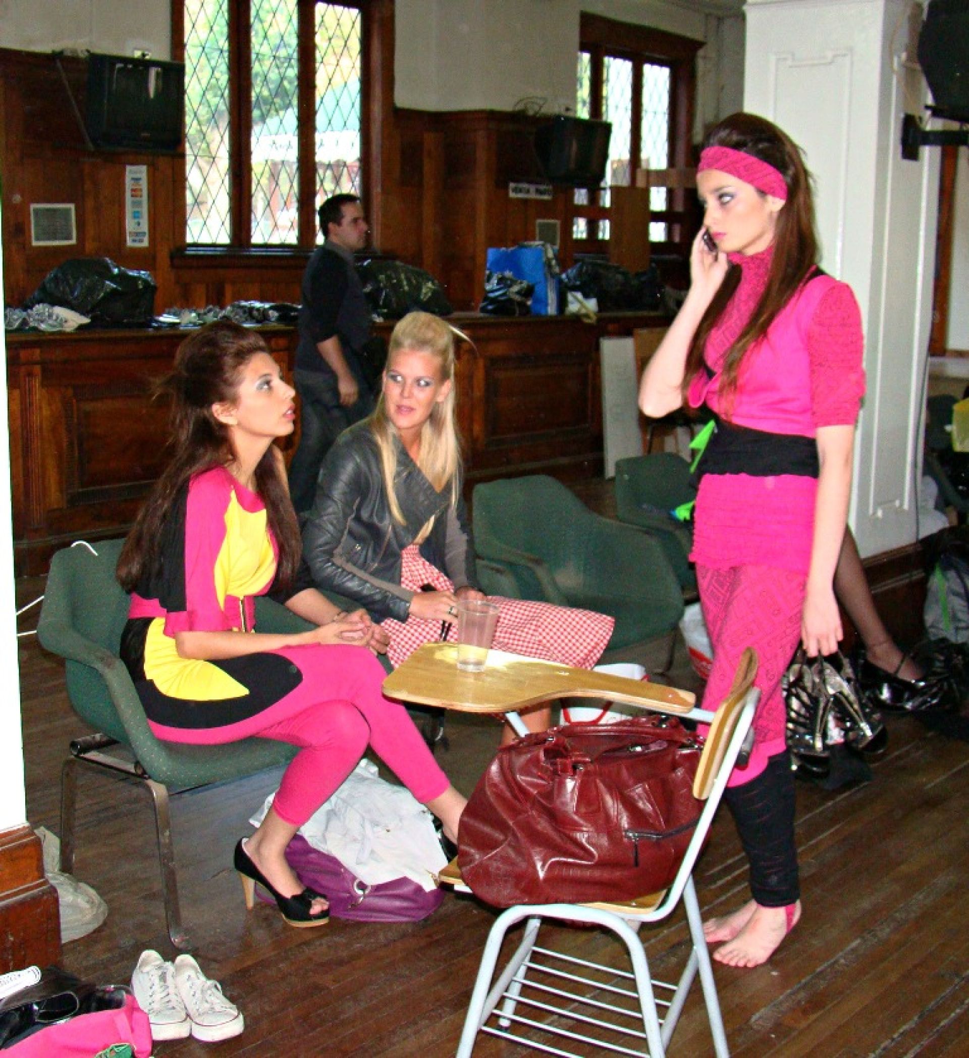 La fiesta era en grande y con mucho movimiento. Mientras las modelos lucían los vestuarios diseñados por los alumnos y las maquilladoras preparaban todos los accesorios y complementos, los alumnos se mostraban nerviosos pero seguros frente al magno evento que habían organizado.