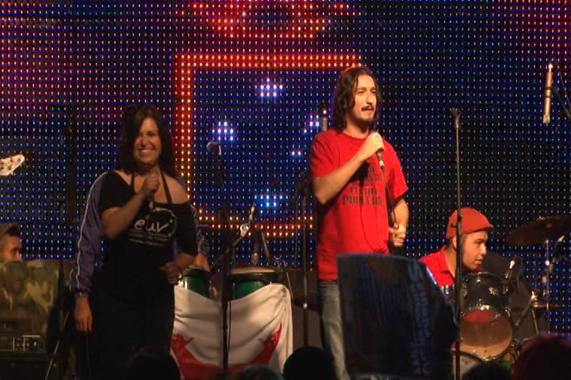 El concierto en el Velódromo de Playa Ancha comenzó con el show de La Sativa Ska, banda integrada por jóvenes que estudiaron en el Liceo Eduardo de la Barra y que durante el verano participaron en el Rockódromo tras ganar el concurso Medias Bandas organizado por la Dirección de Extensión y Comunicaciones de la UV.