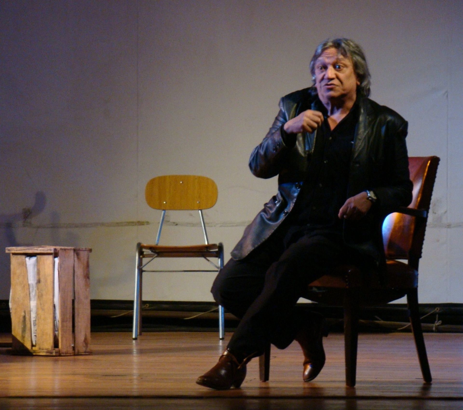 Óscar Castro es chileno, actor, fundador de la compañía Théâtre Aleph. Hace más de cuarenta años que vive en Francia, pero no olvida sus raíces chilenas. Tal es así que con la compañía se encuentra desarrollando una gira por Chile, que incluyó una clínica de teatro con los estudiantes de Actuación Teatral de la UV, y una única función del monólogo “El vuelo del cuervo”, que tuvo lugar este miércoles en el Aula Magna de la Universidad de Valparaíso.