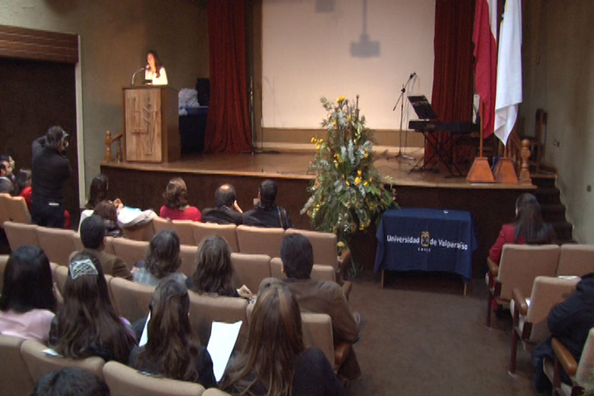 La Escuela de Medicina de la Universidad de Valparaíso entregó este viernes la investidura oficial a 66 estudiantes de primer año de la carrera, en una ceremonia académica que se realizó en el auditorio de la unidad académica y que fue encabezada por la secretaria de la Facultad, Jessica McCawley; el director de la Escuela, Cristián Salazar, y la secretaria académica de la misma, Paula Gajardo.