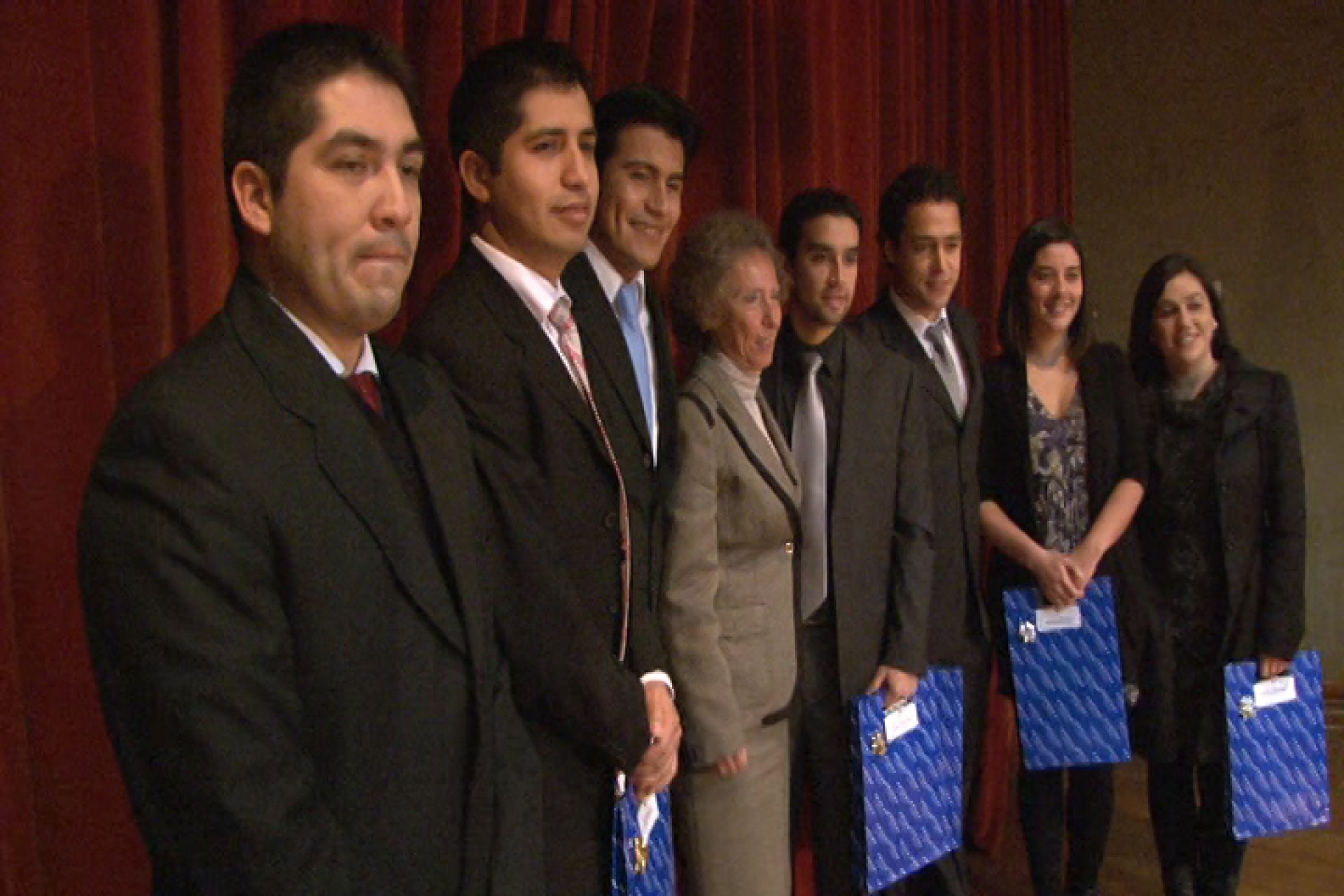 La ceremonia de bienvenida a los nuevos becarios se efectuó en el auditorio de la Facultad de Medicina y fue encabezada por Manuel Roncagliolo, director de Postgrado de la UV; el decano de Medicina, Antonio Orellana; el director de la Escuela de Medicina, Cristián Salazar, y la directora de Postgrado y Postítulo de la Escuela de Medicina, Aída Milinarsky.