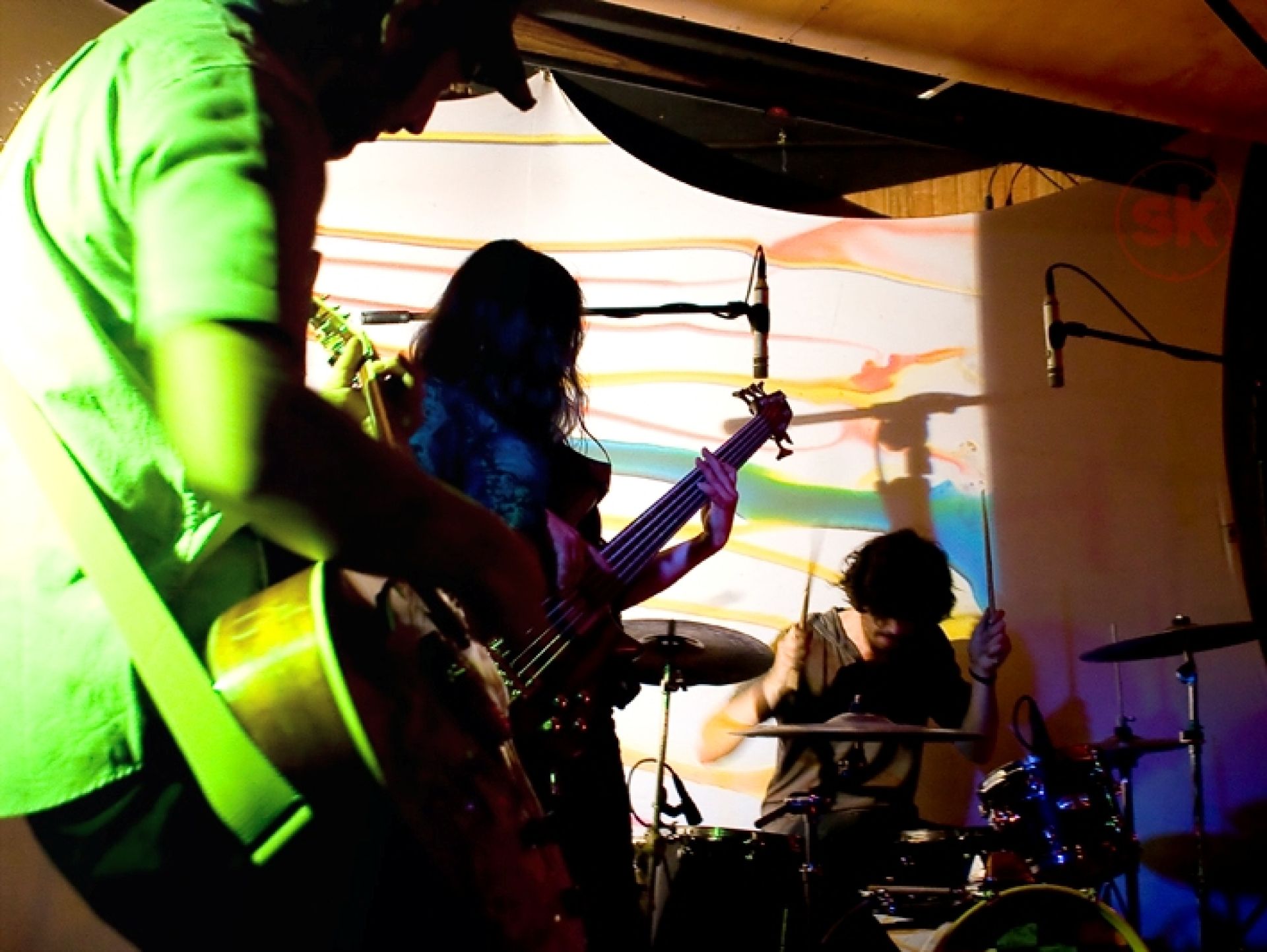 Las composiciones mostradas, junto a otros temas del álbum “La muerte de los árboles” (2011), fueron celebradas por el encendido público, que además disfrutó de una cuidada puesta en escena que incluyó coloridas y dinámicas proyecciones sicodélicas del equipo Entelequia. Además se contó con la participación de Pascuala Ilabaca, quien aportó con su voz a una electrificada y ruidosa lectura de “Según el favor del viento”, original de Violeta Parra.