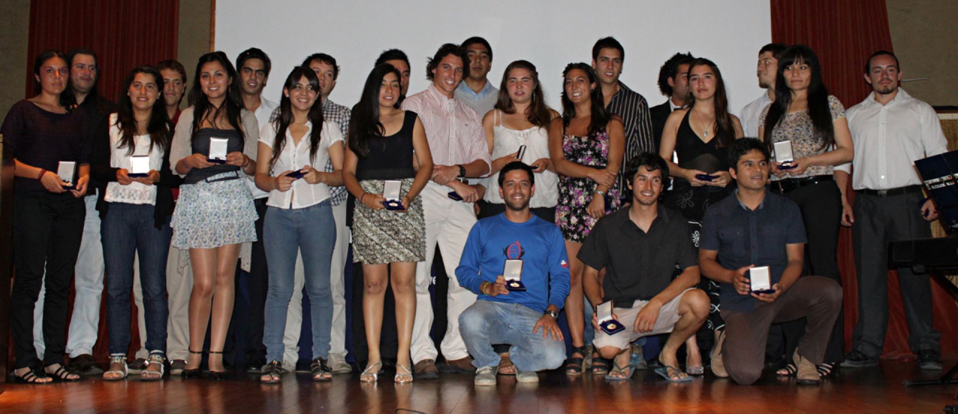 Es así como fueron premiados Maite Sanino, de Enfermería, seleccionada nacional de vóleibol, y Francisco Chacana (Nutrición y Dietética), Sebastián Araya (Kinesiología) y Javier Frelijj (Tecnología Médica), seleccionados nacionales en balonmano.